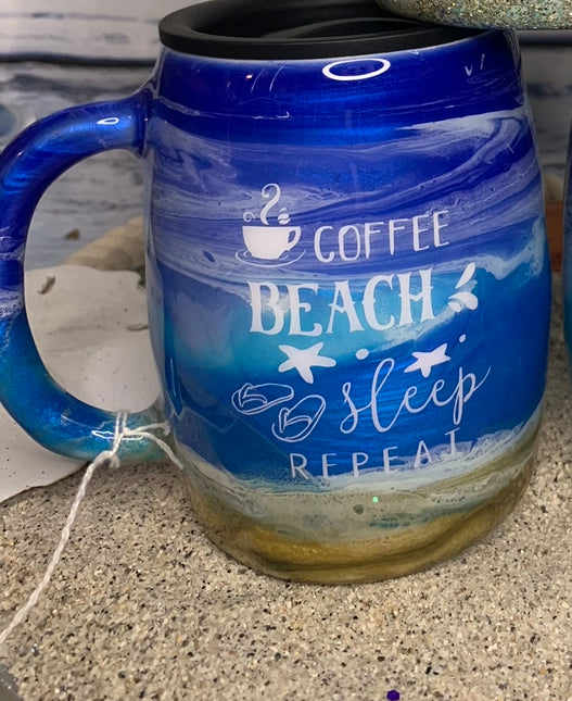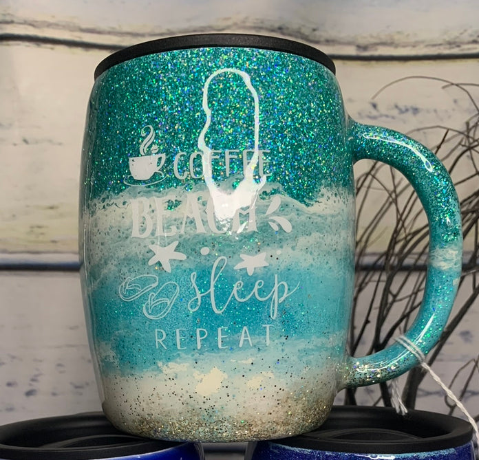 Coffee Beach Sleep Repeat Glitter beach epoxy tumbler