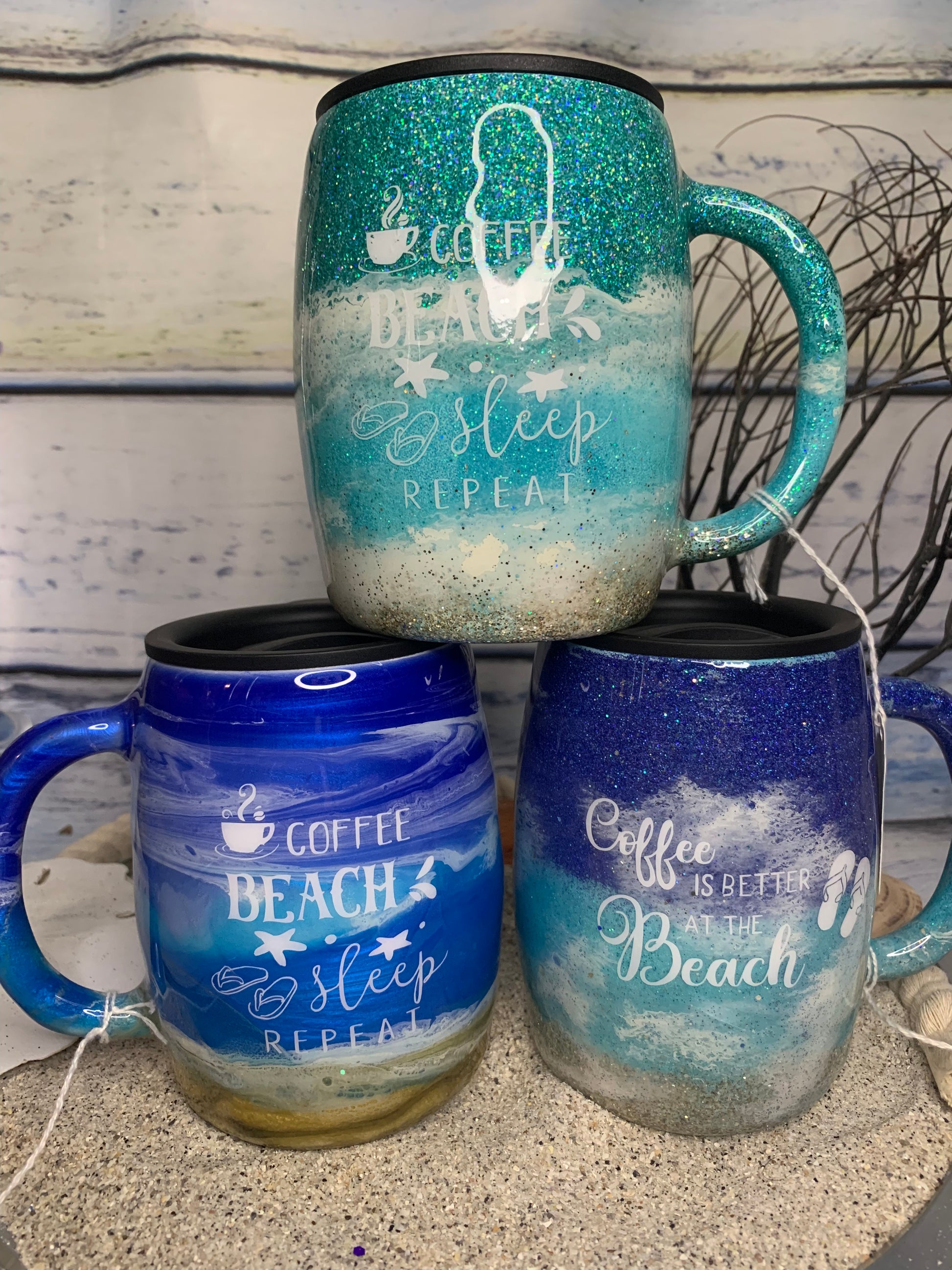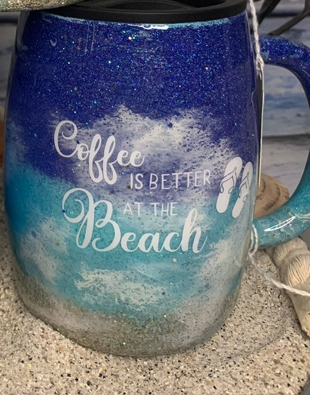 Coffee is better at the beach Glitter beach epoxy tumbler