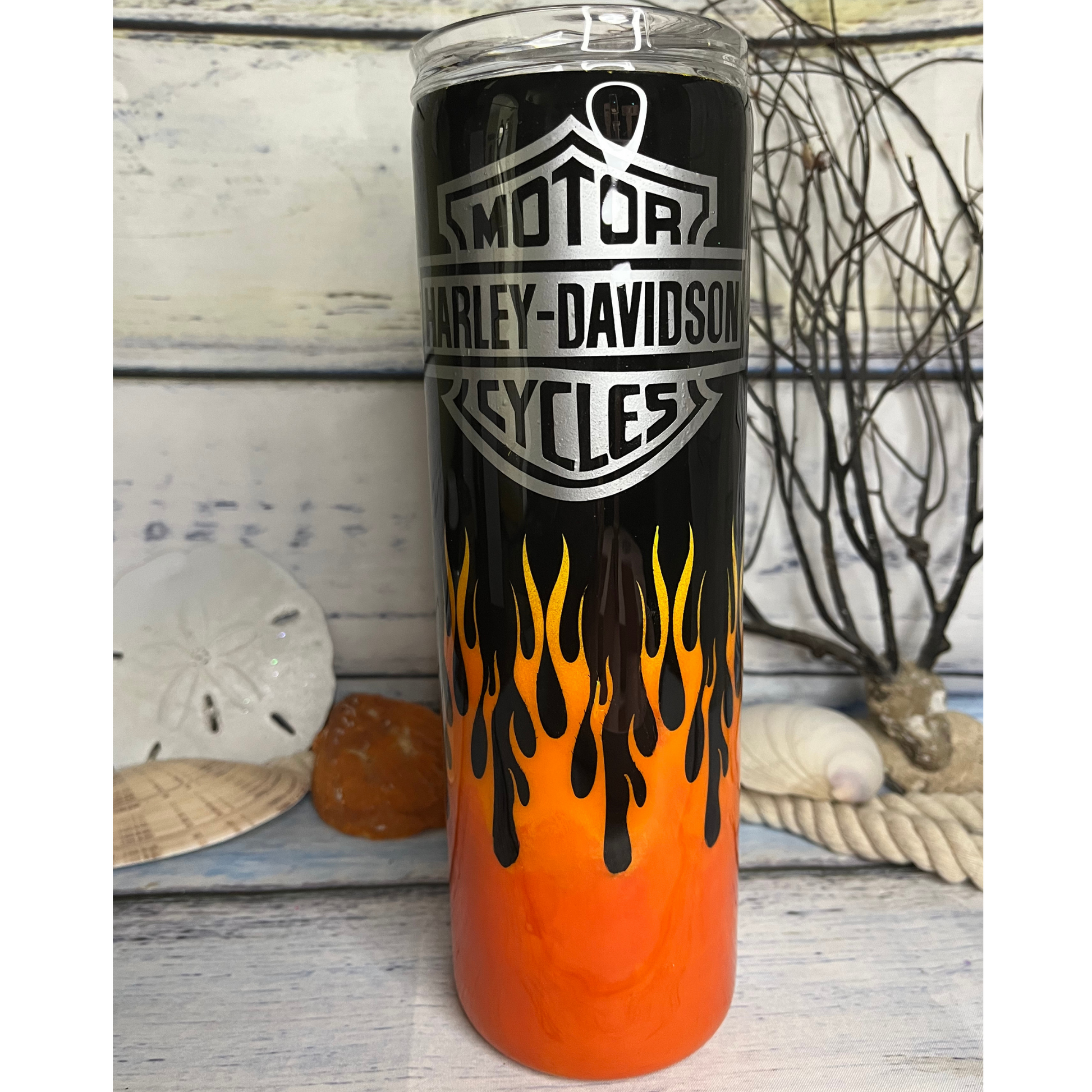 Stay cool with this stylish Harley Davidson tumbler! Featuring a vibrant Harley and flame design, this colorful epoxy tumbler is perfect for showing off your loyalty to the brand. Enjoy your favorite cold beverages with this awesome accessory, all while showing off your fashionable side!