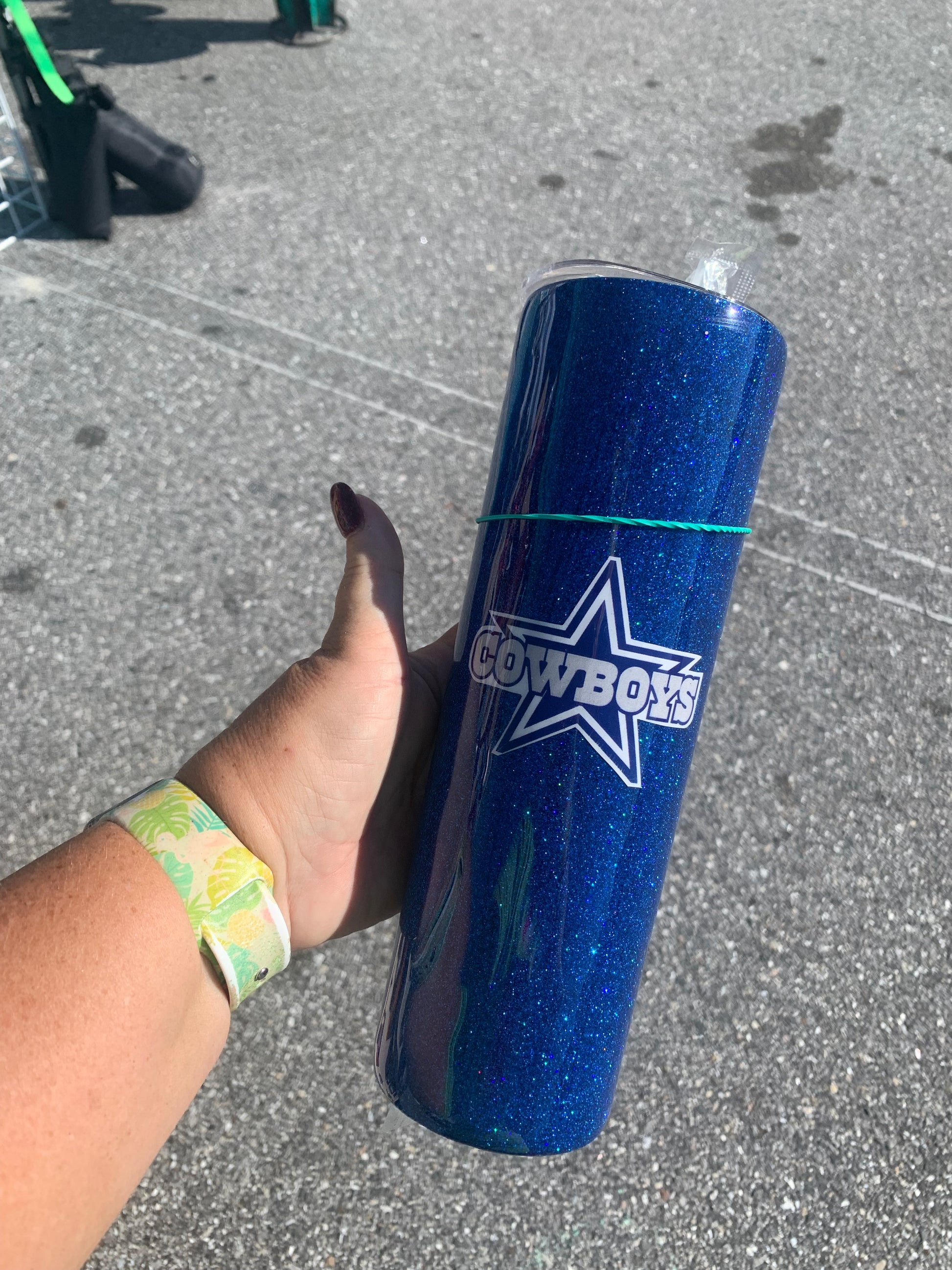 Be the envy of all of your friends with this sparkling all glitter sports team epoxy tumbler. Enjoy your favorite drinks while repping your team's colors with this one of a kind, show-stopping container! No one can hold a candle to your sparkle-power!!