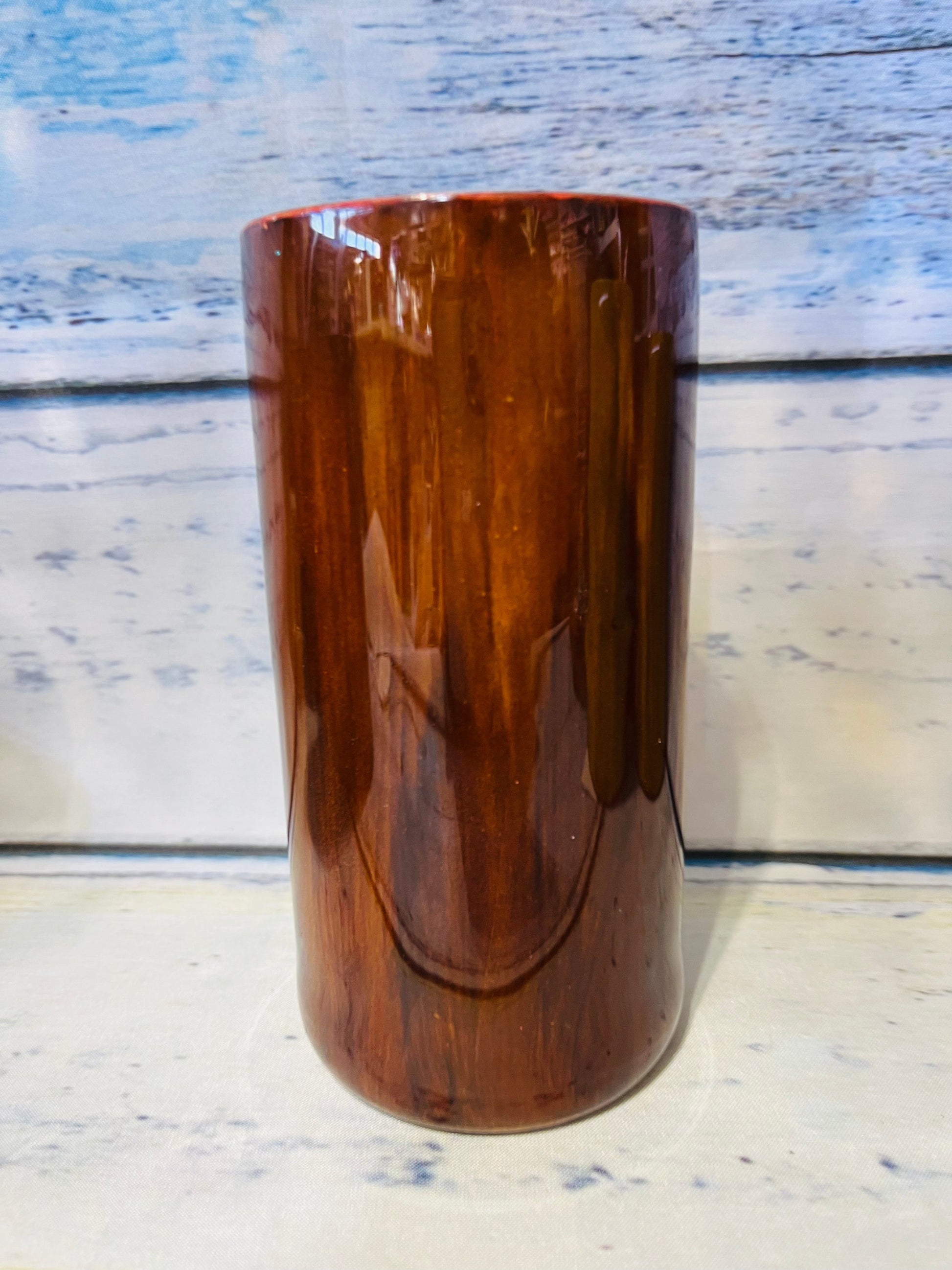 Available in 12 oz. low ball, 15 oz skinny or 14 oz wine cup and in a light wood or darker wood finish.