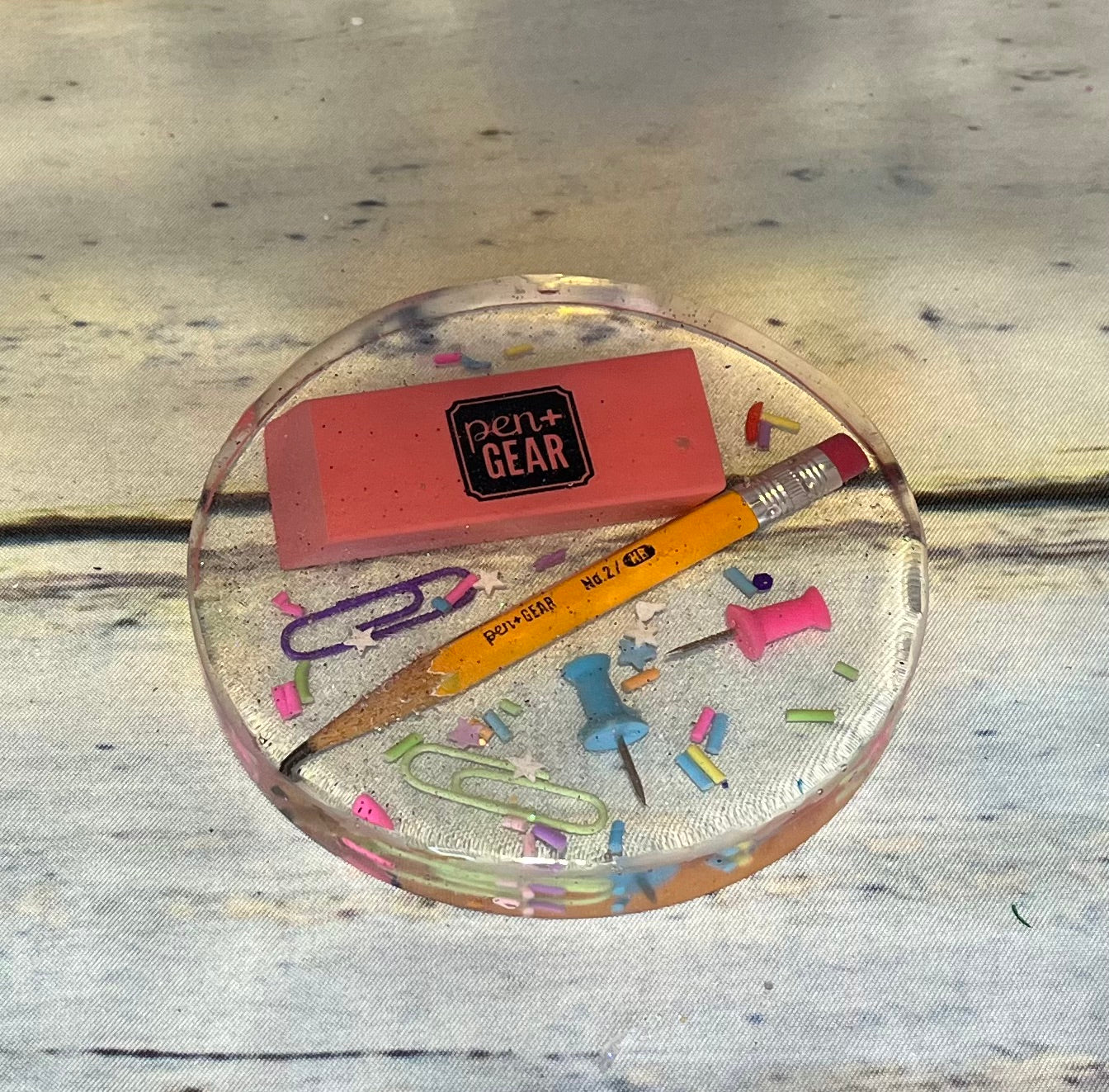 Show the teacher in your life you care with this one-of-a-kind desk coaster! Custom-made with your unique design, it’s the perfect way to add a personalized pop of color to any desk. Plus, its epoxy finish means it’ll resist wear and tear like a champ. (Trust us, teachers need all the help they can get!)