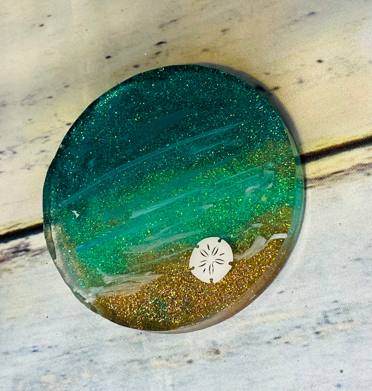Custom beach epoxy desk coaster