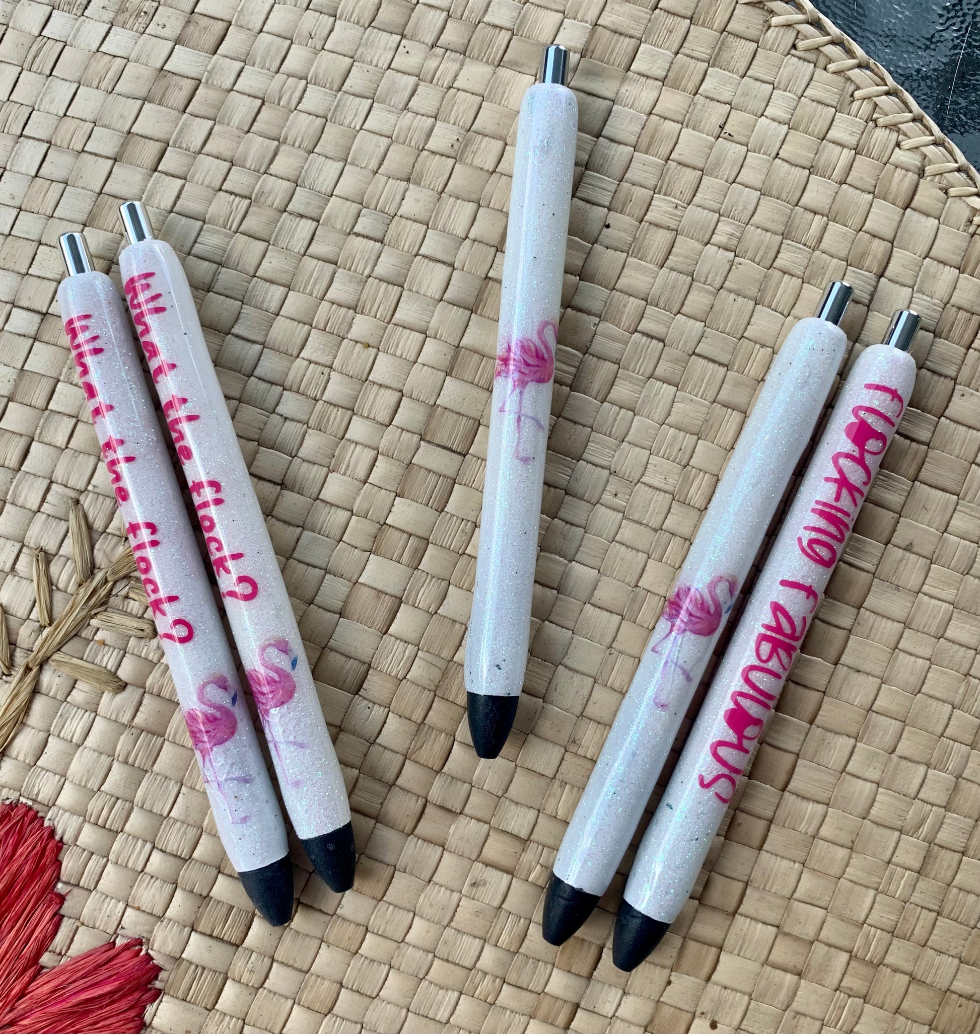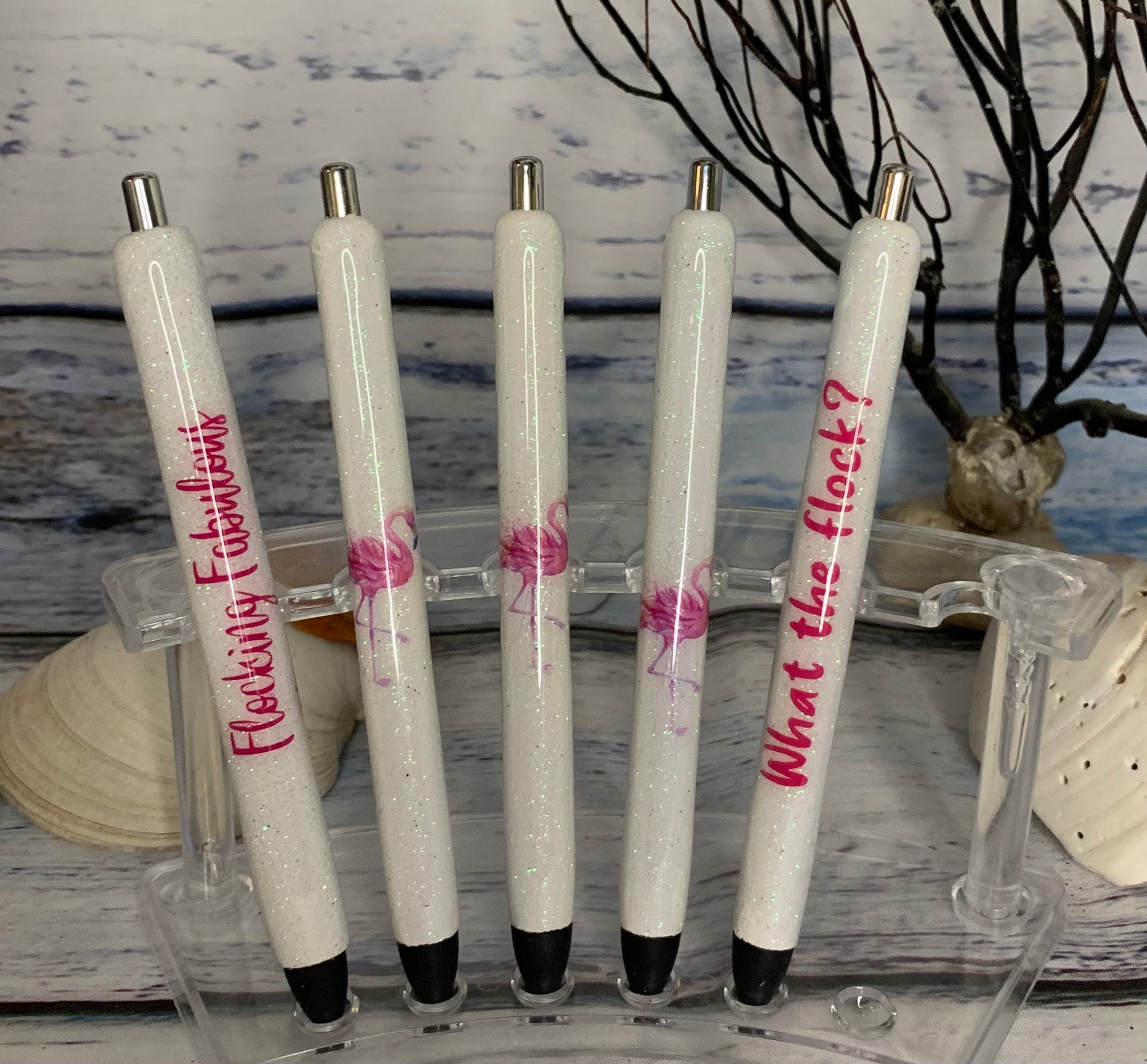 These fabulously flamingo custom glitter epoxy pens will make you the envy of all your friends! Bring some sparkle to your desk with these flashy writers-- perfect for jotting down your most important memos! Glitz and glamor included ;)