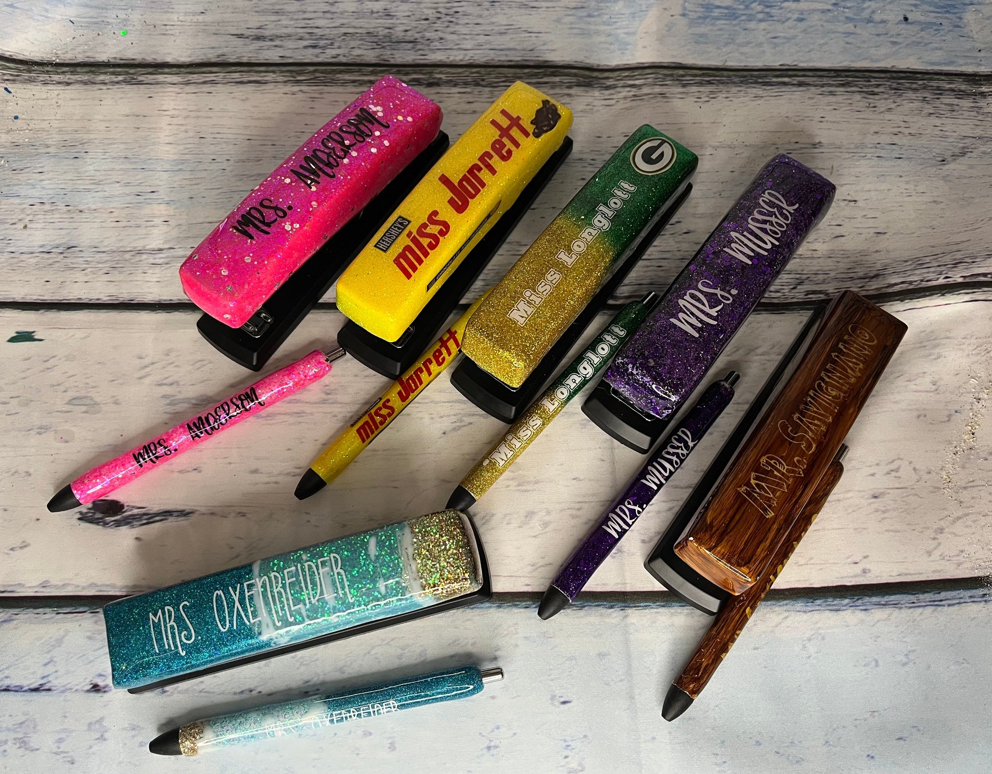 Custom wood grain epoxy staplers