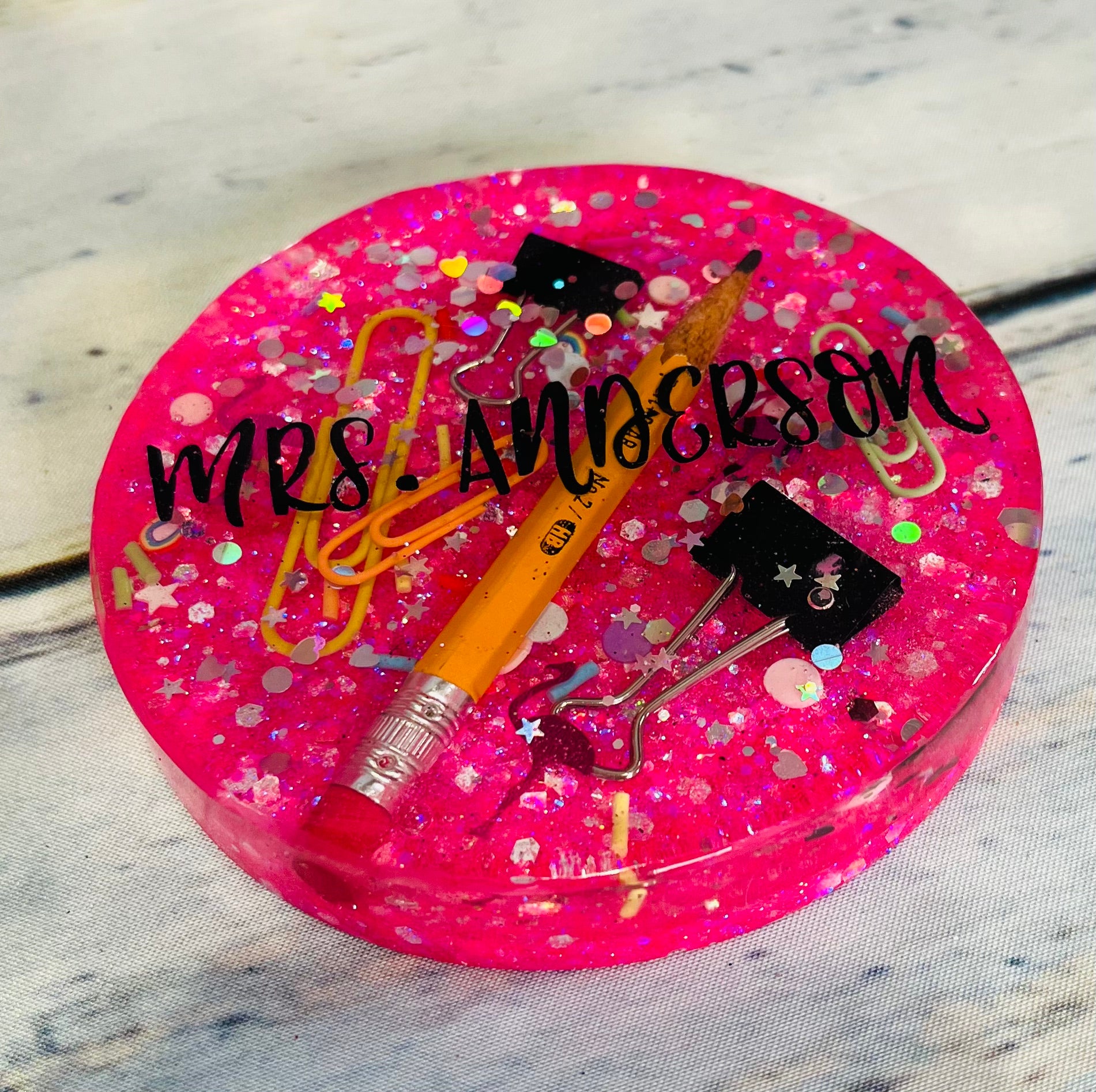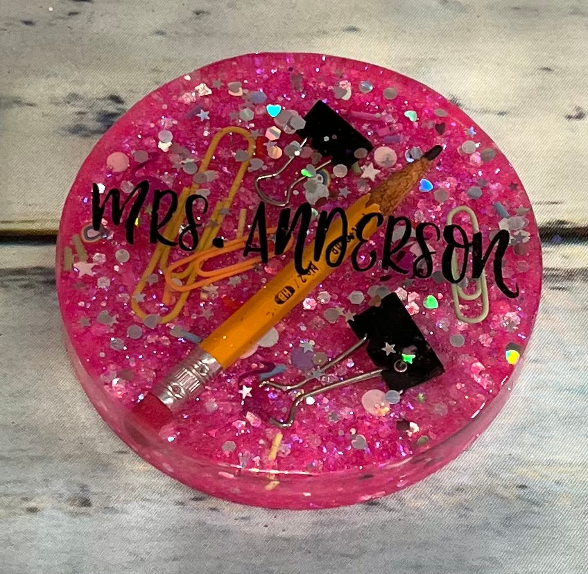 Custom glitter epoxy desk coaster
