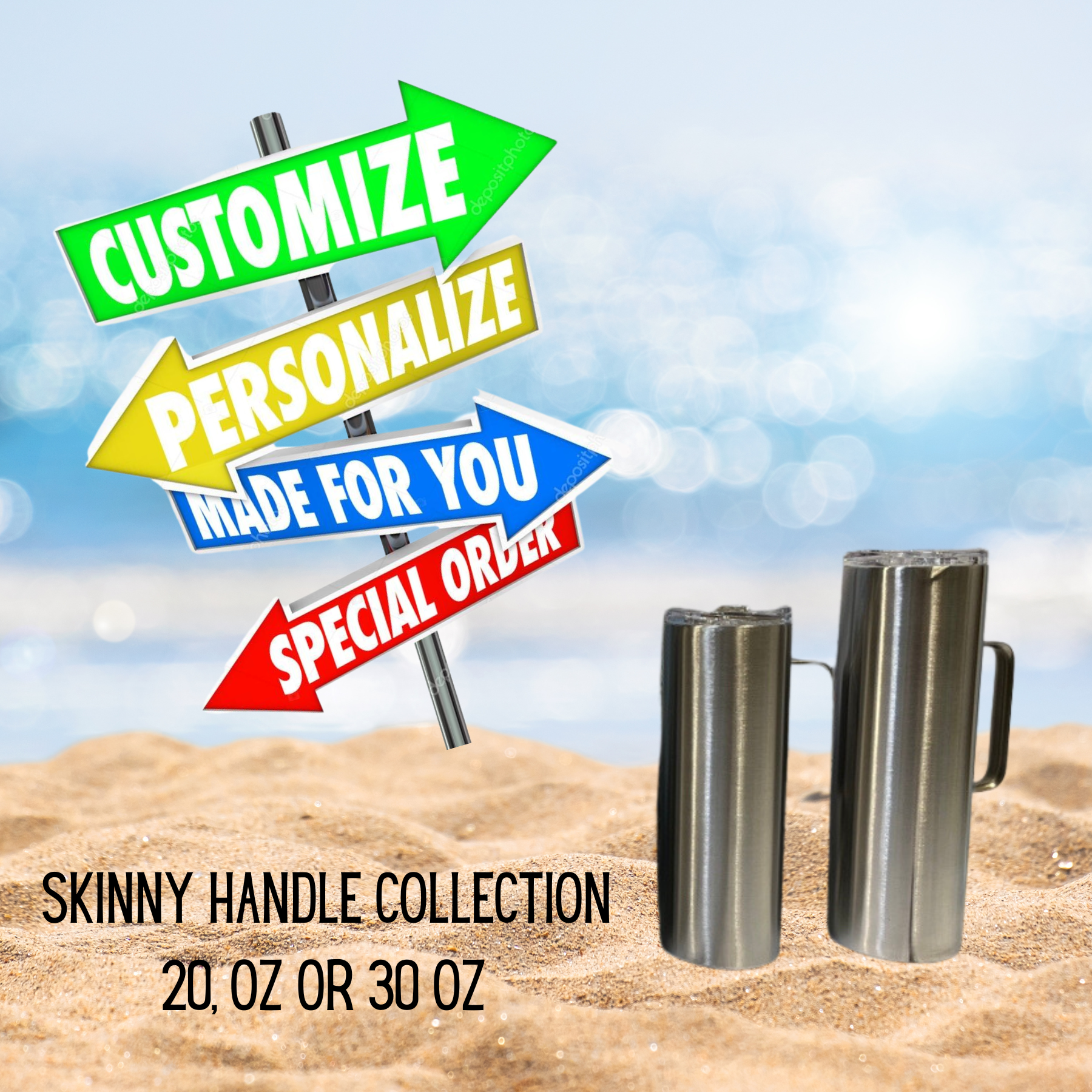 Create the perfect personalized tumbler for your big cup of jo- design your own Customize Your Own Skinny Handle Tumbler! Just pick your colors and patterns and you'll have the trendiest tumbler around! The possibilities are endless! Zoom zoom, time to get creative!