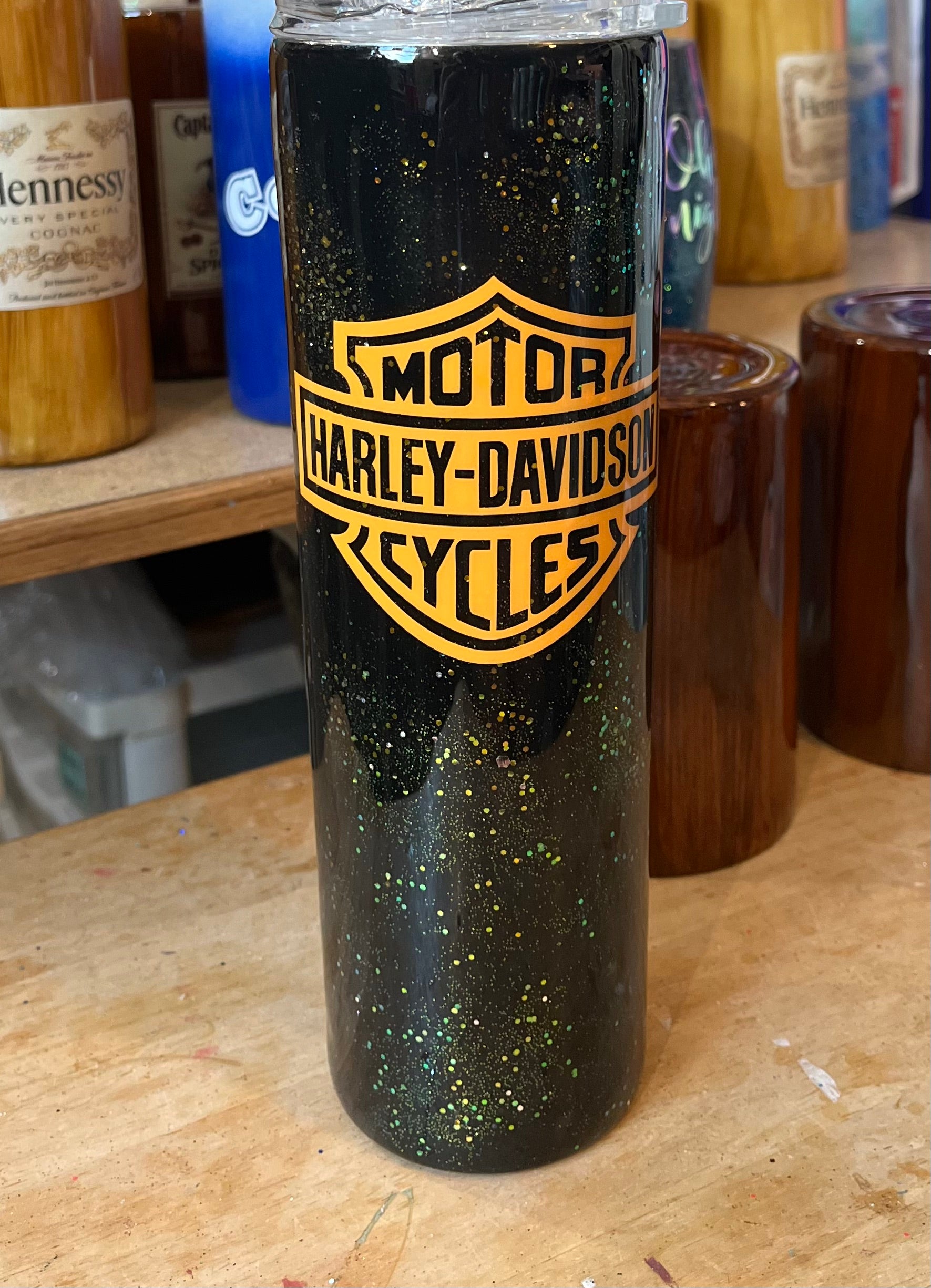 Quench your thirst for adventure with this Harley Davidson logo glitter epoxy tumbler! Perfect for showing off your wild spirit and love for Harley, this tumbler will make you stand out in the crowd. Ride off into the sunset in style!
