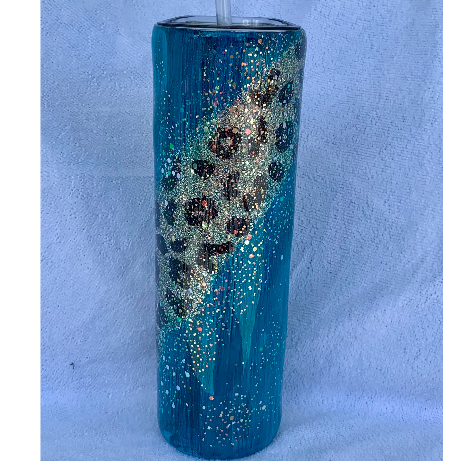 leopard glitter swirl epoxy tumbler