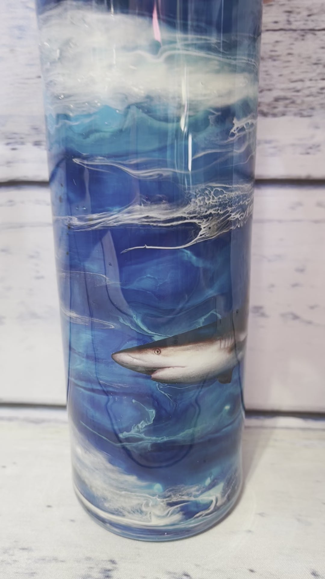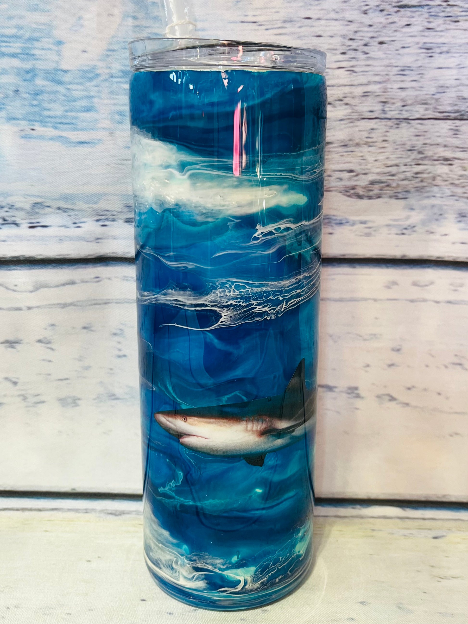 Swim your way through the ocean with this whimsical ‘Shark in Ocean’ epoxy tumbler! Make a bold statement, and sip like a big fish in the sea. This tumbler keeps beverages cold for hours, so you can take the plunge no matter where you’re headed.