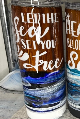 Set sail with the Let the Sea Set You Free epoxy tumbler! It's just the vessel for adventures on the high seas (or the low seas, or any seas!). This handcrafted beauty is up for any journey - just make sure to pack plenty of snacks. Yarrrrr!