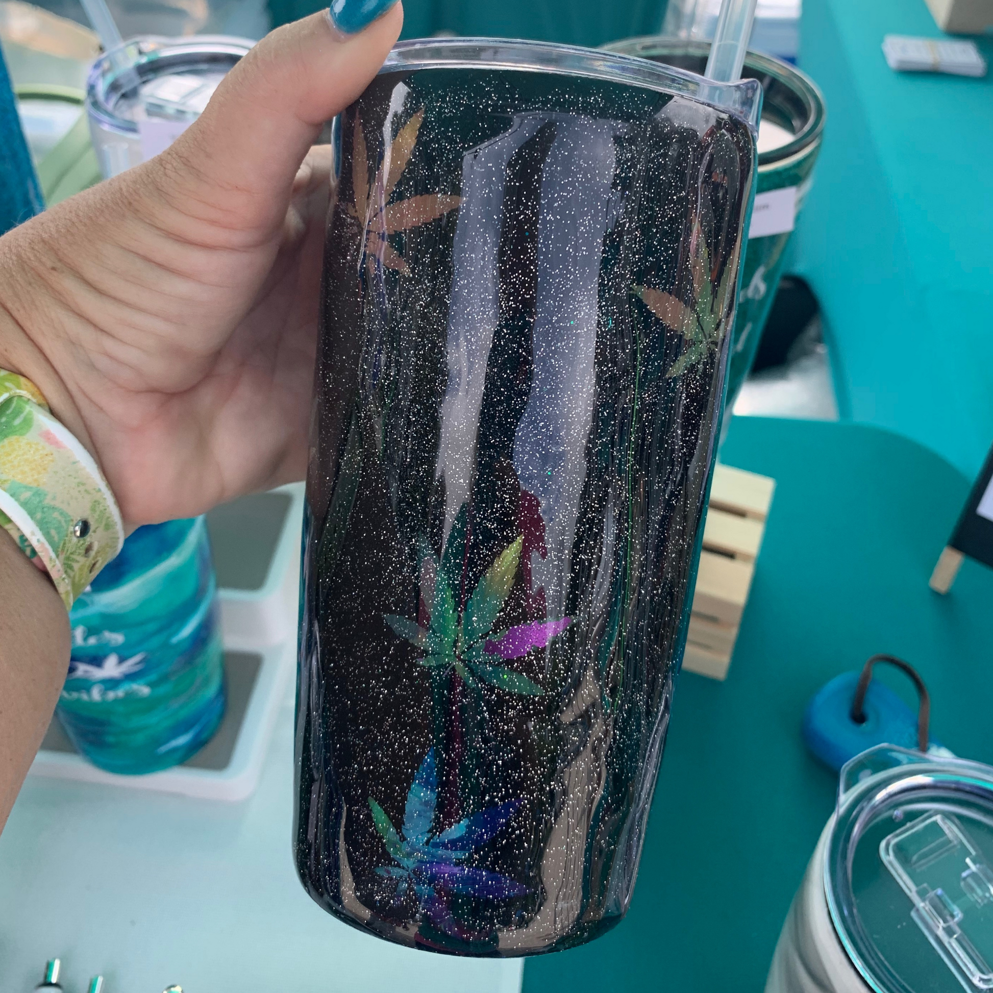 Glitter weed leaf peek a boo epoxy tumbler