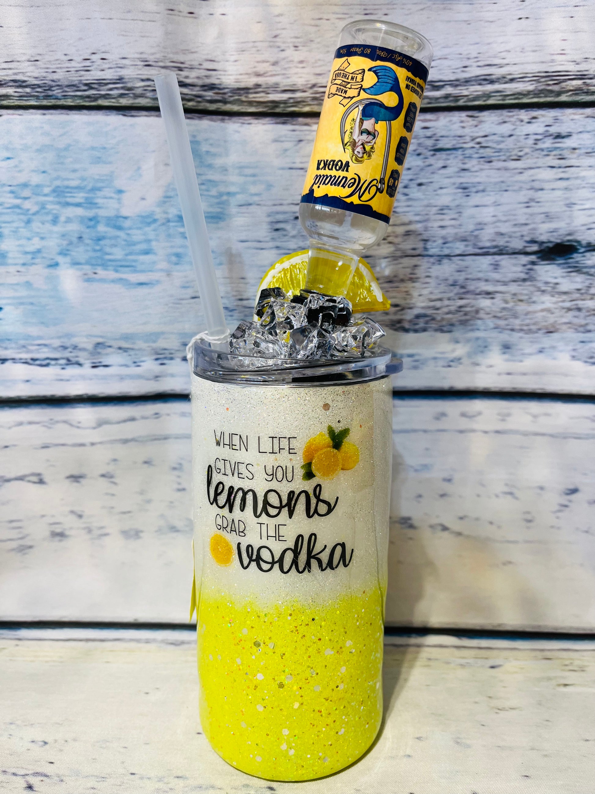 When life gives you lemons Grab the vodka topper glitter epoxy tumbler