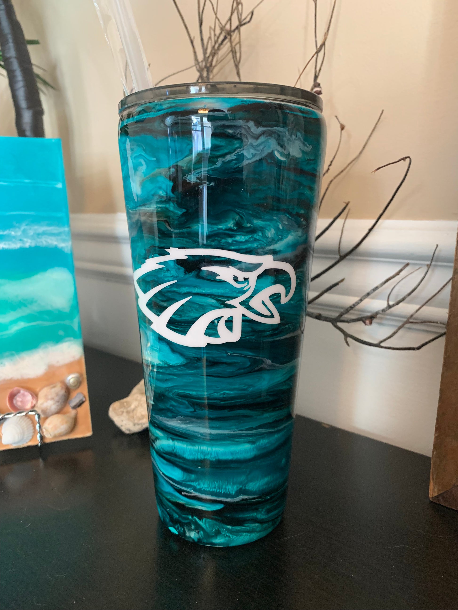Cheer on your team with this vibrant, custom epoxy tumbler! Show your team spirit, whatever the season! With team colors and a unique epoxy finish, it's the perfect companion for any sports fan. Things will really heat up with this custom-made beauty in tow!