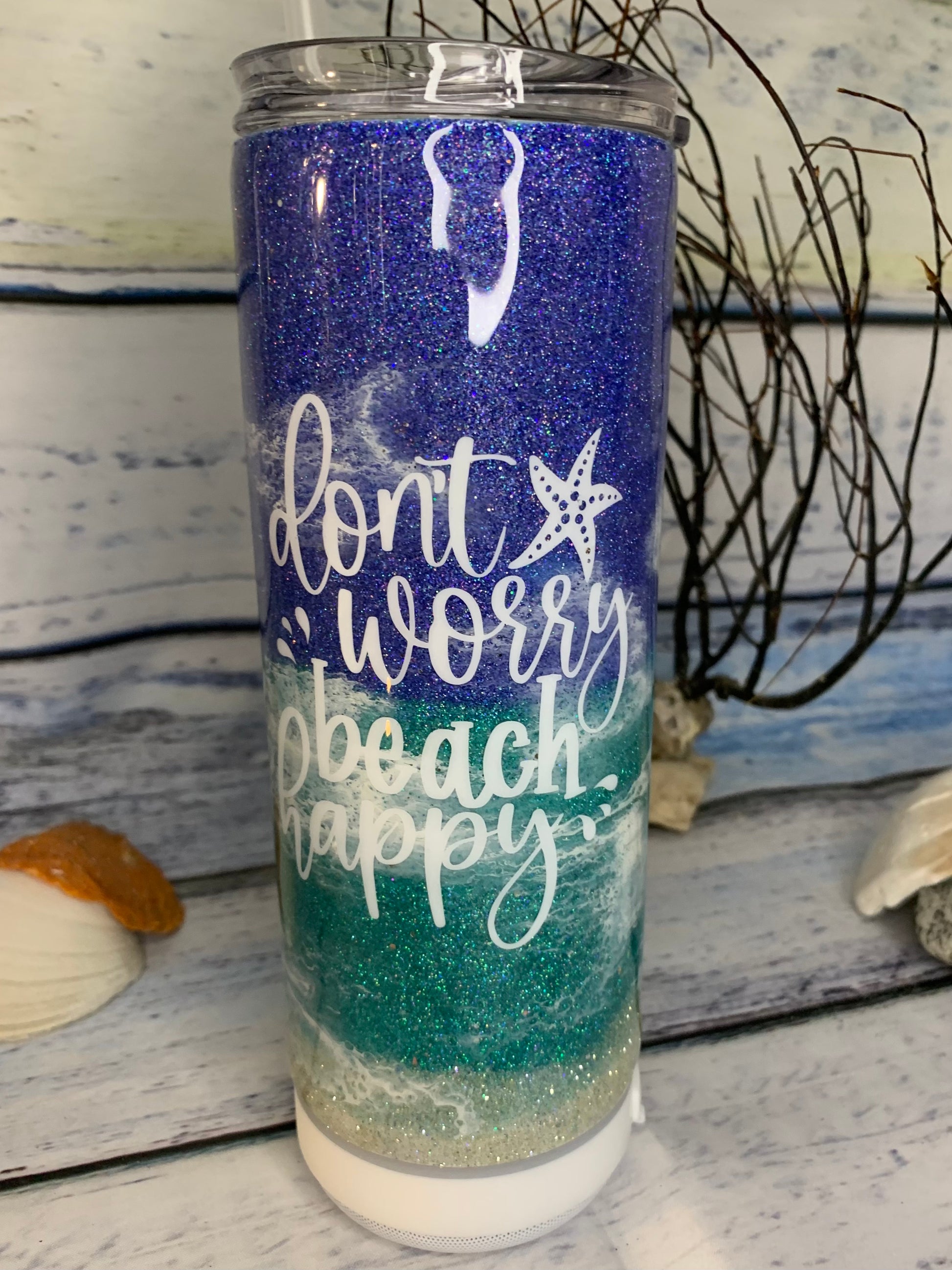 Don't Worry Beach Happy Glitter beach epoxy tumbler
