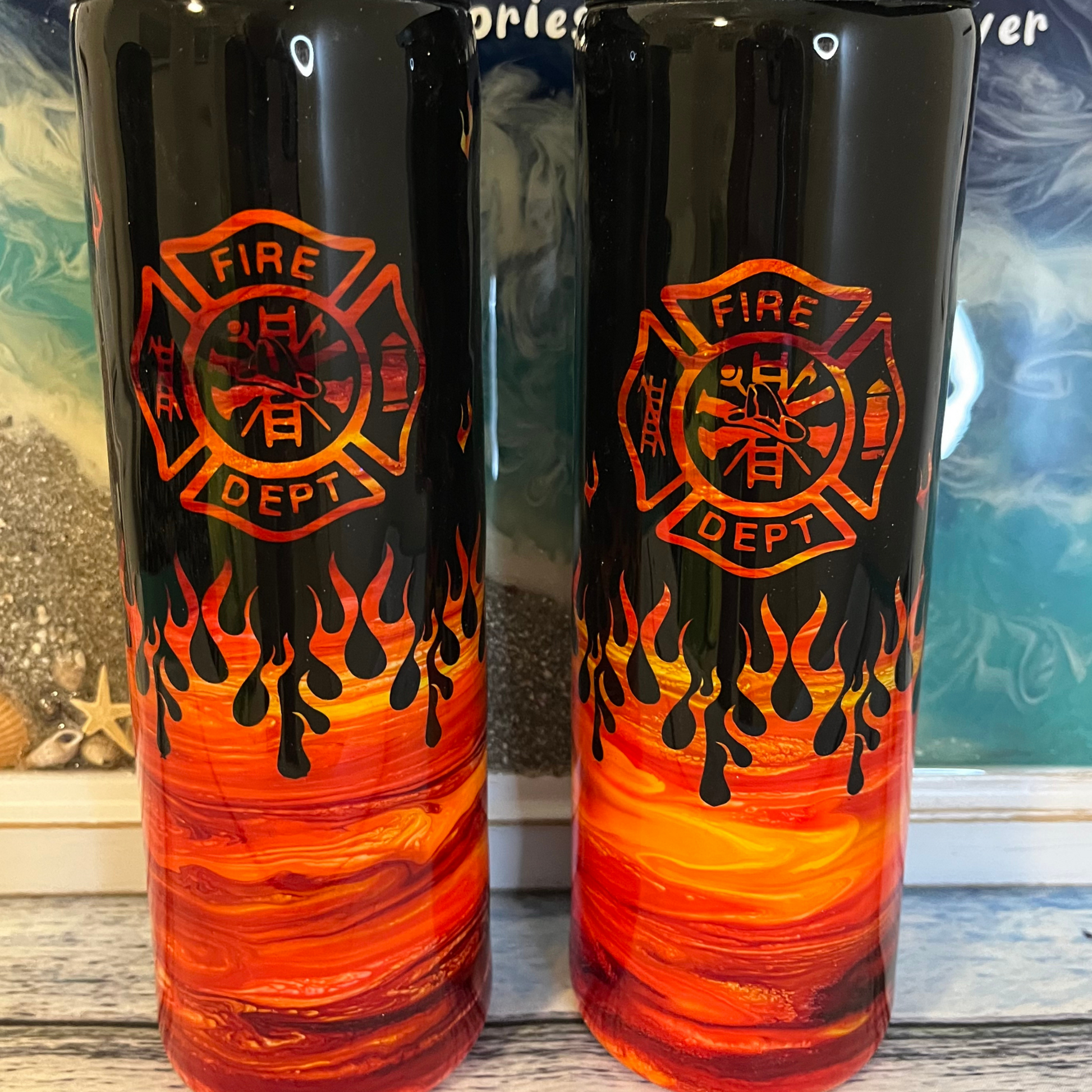 firefighter with flames epoxy tumbler
