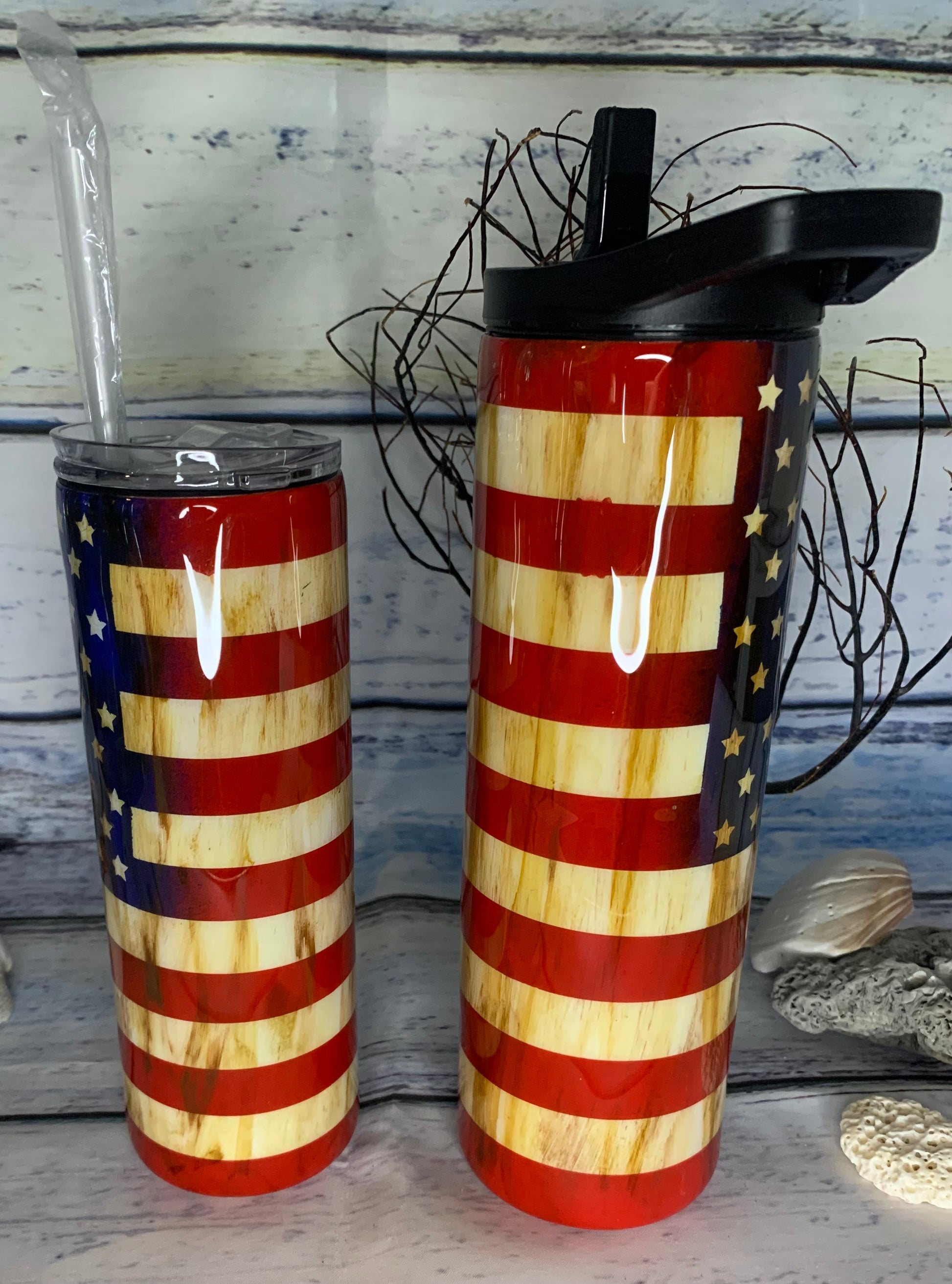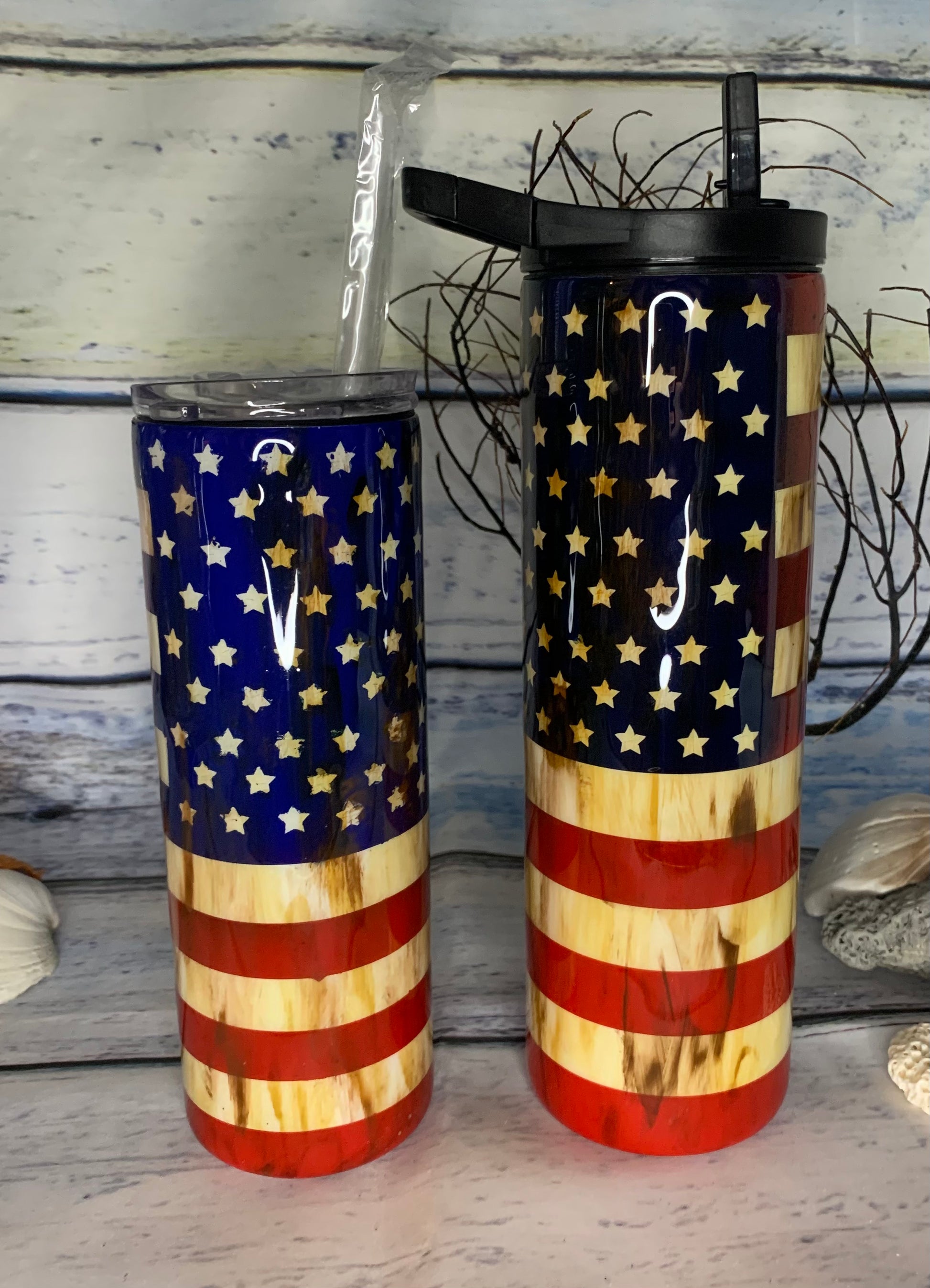 Stay cool and stylish on-the-go with this eye-catching distressed flag epoxy tumbler! The shiny epoxy exterior with its flag design is full of patriotic vibes, while its double-wall insulation will help keep your drinks at the perfect temperature all day long. Truly a perfect accessory for showing your country pride and sippin' in style!