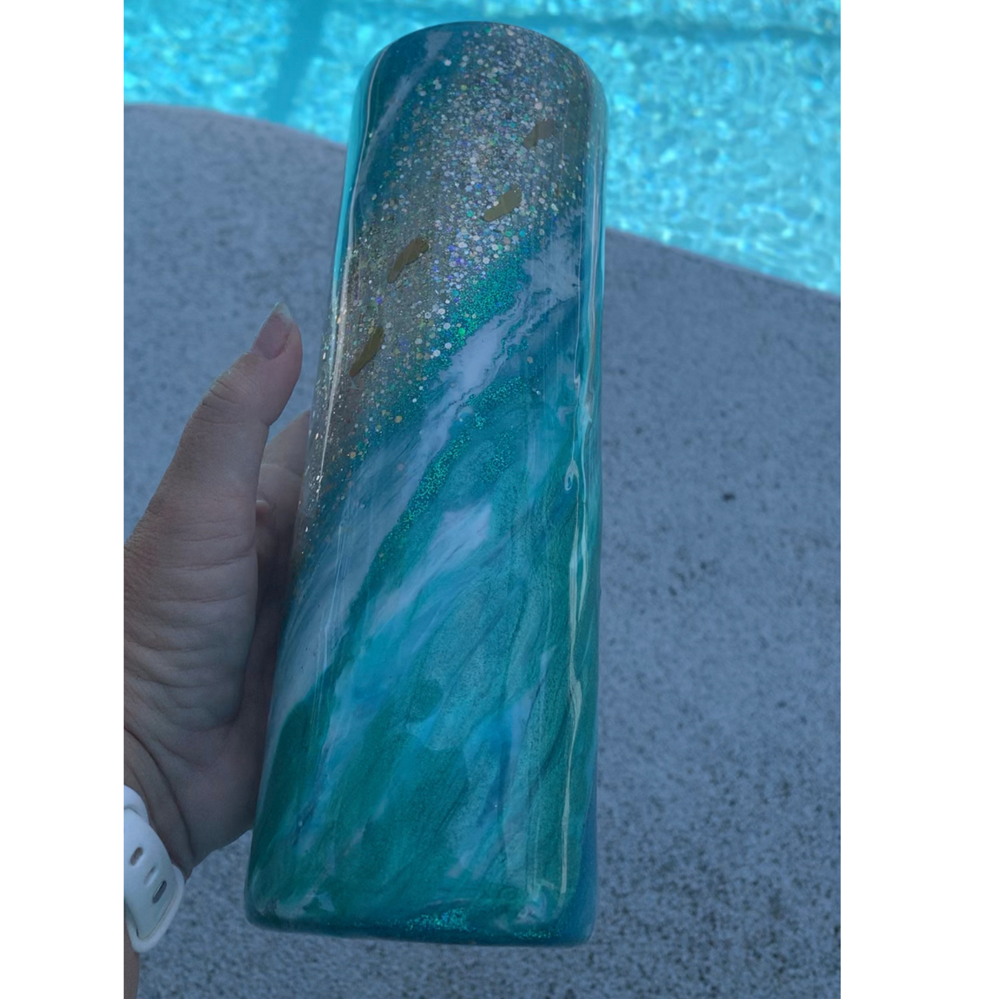 I use HOGG brand double wall, insulated stainless steel tumblers with lids. They will keep beverages hot or cold for a long time. Each tumbler is handmade and unique, not made in a machine. They are finished with several layers of FDA compliant epoxy which gives you a glass like finish. No two tumblers will be exactly alike.