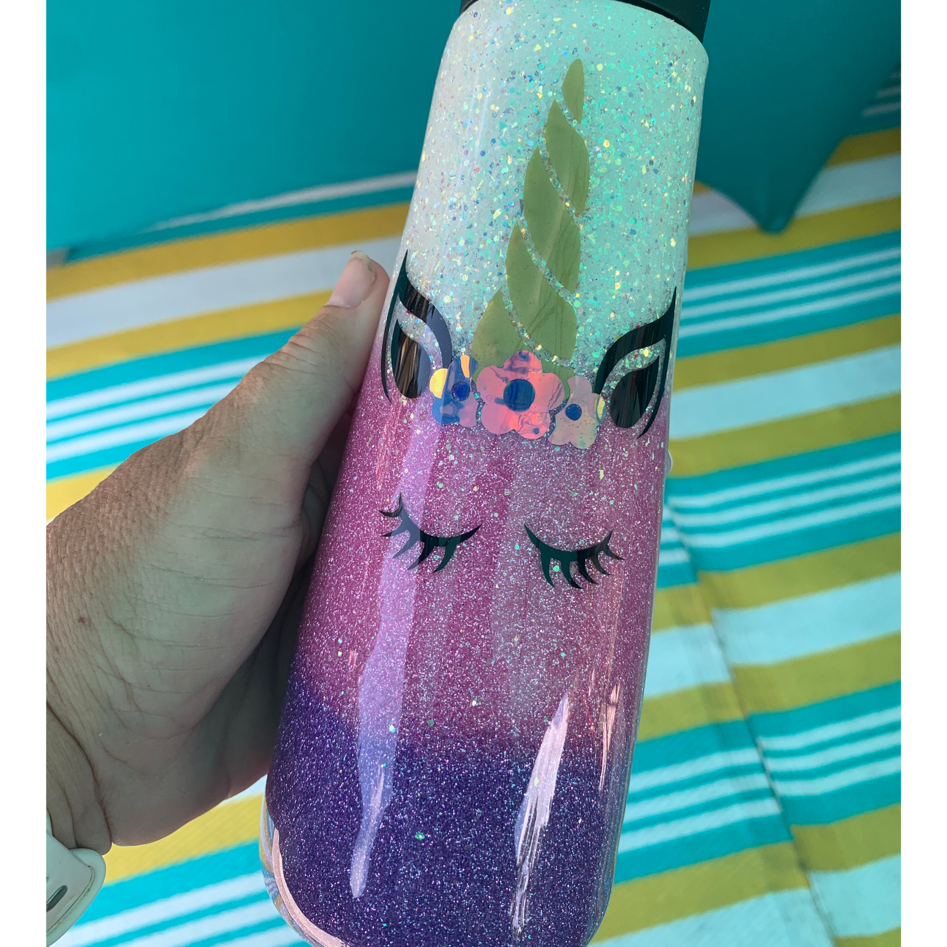 glitter unicorn epoxy tumbler