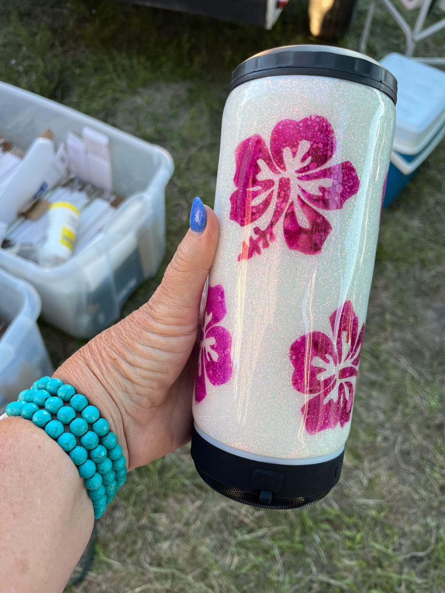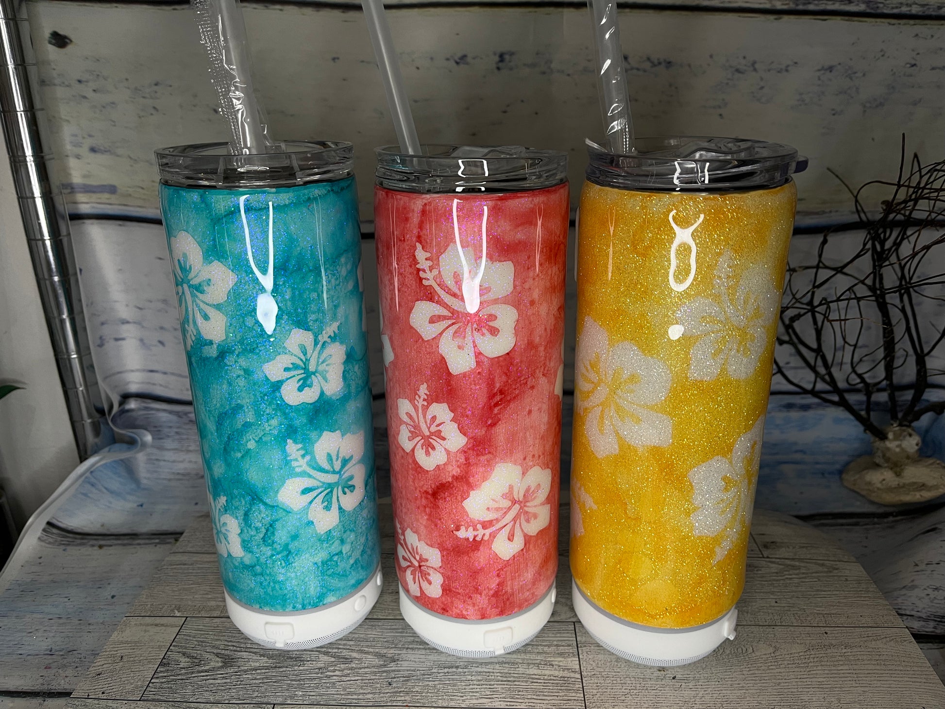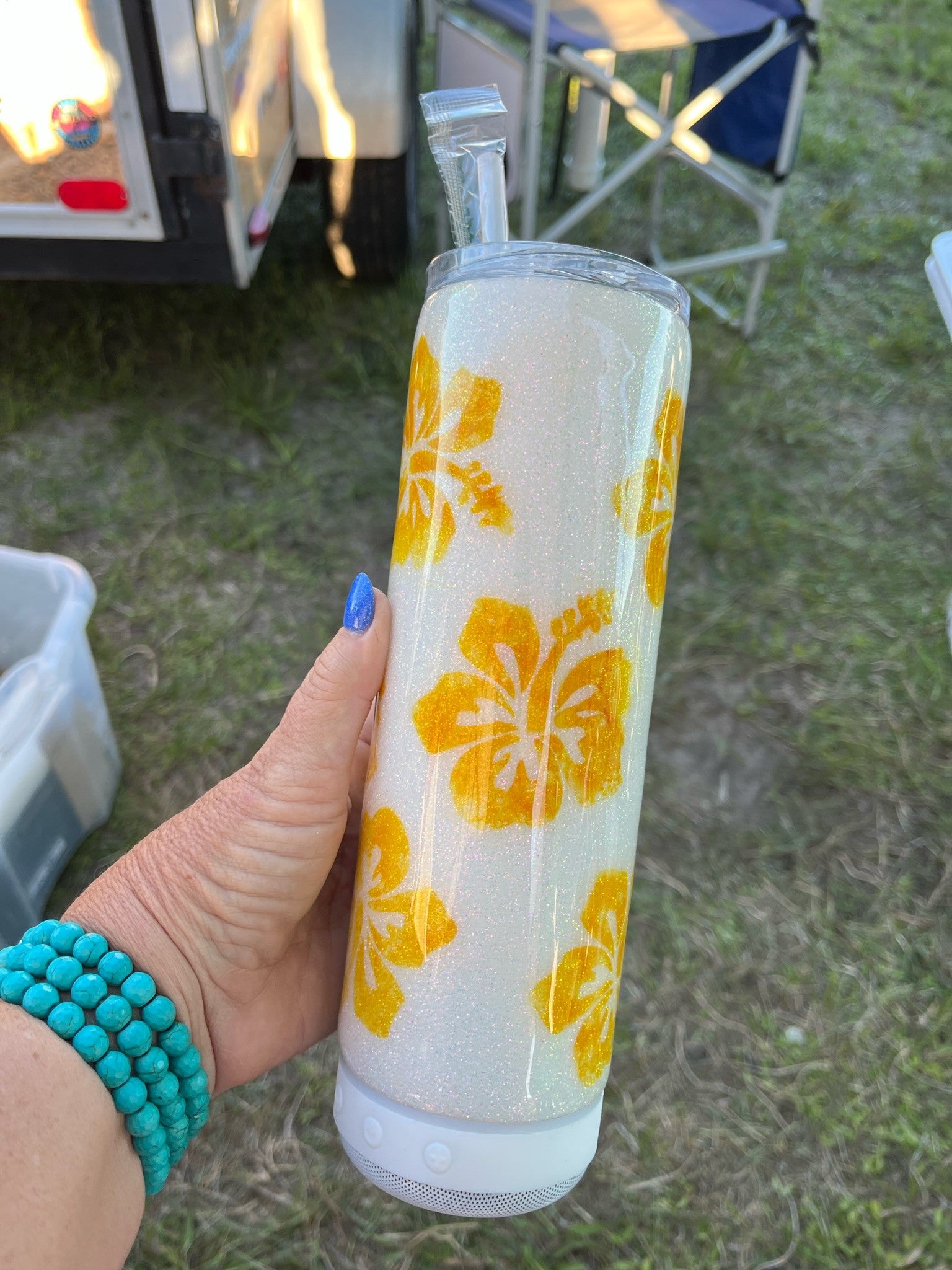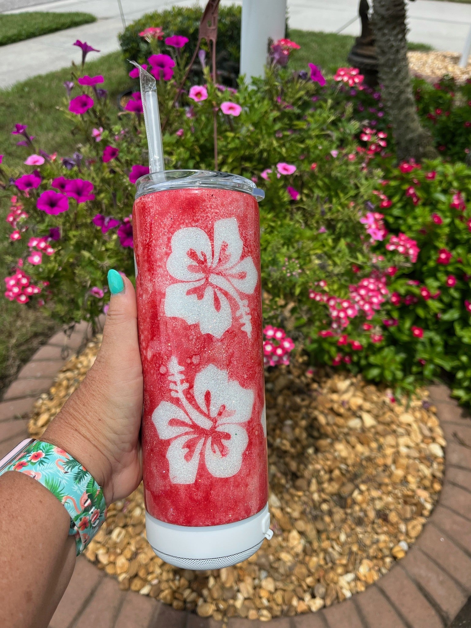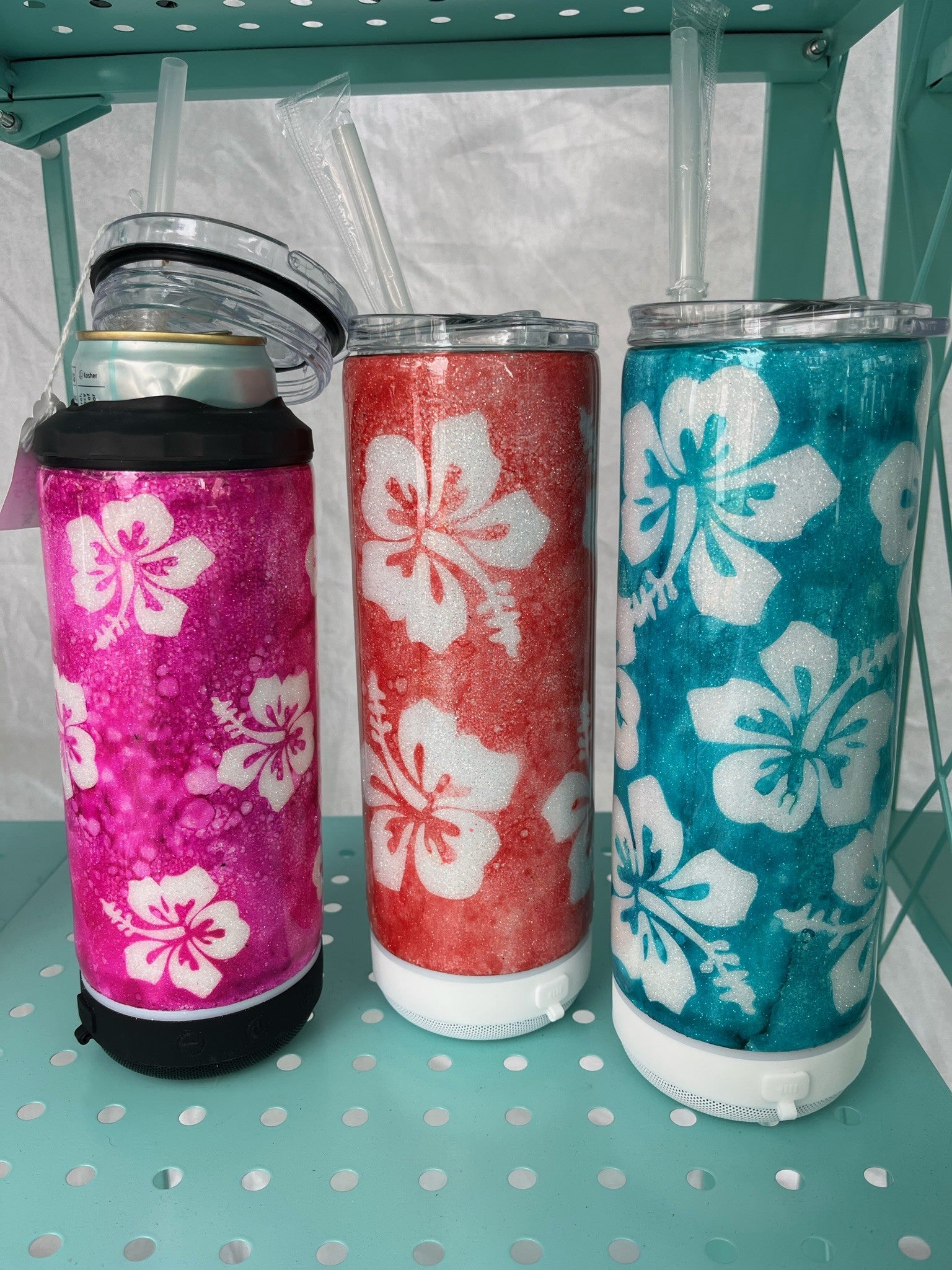 Blast your favorite tunes—or your least favorite, no judgement here— with this unique Hibiscus Tumbler with Speaker! A convenient way to take your tunes with you wherever you go. With a splash of fun Hawaiian vibes, show off your style and never miss a beat.
