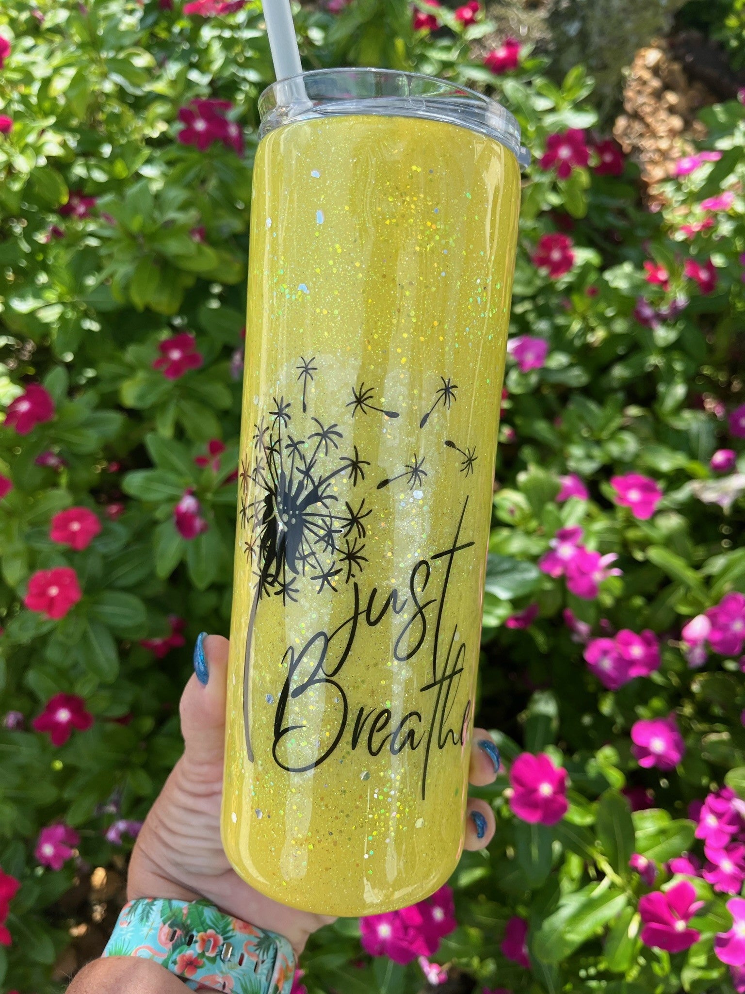 Take a deep breath and enjoy your favorite drink in our Just Breathe epoxy tumbler. Made with high quality materials, this tumbler is perfect for keeping your drink at the perfect temperature while reminding you to take a moment and relax. Sip in style and remember to just breathe! (2 exclamation points)
