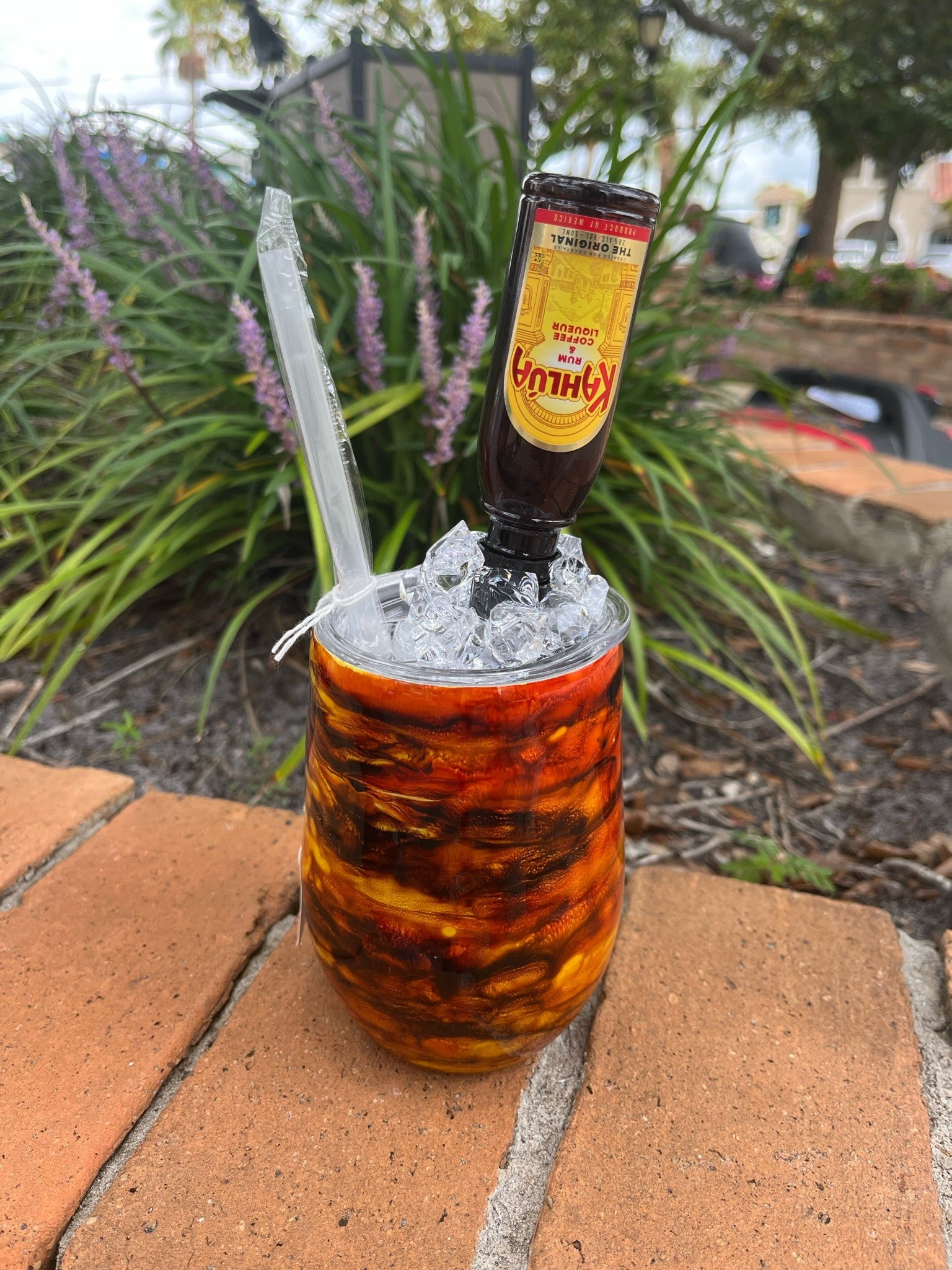 Upgrade your tumbler game with our Kahlua topper epoxy tumbler! Perfectly topped off with a layer of durable epoxy, this tumbler is not only stylish but also built to last. Enjoy your drinks with a touch of fun and flair (and a dash of Kahlua)!