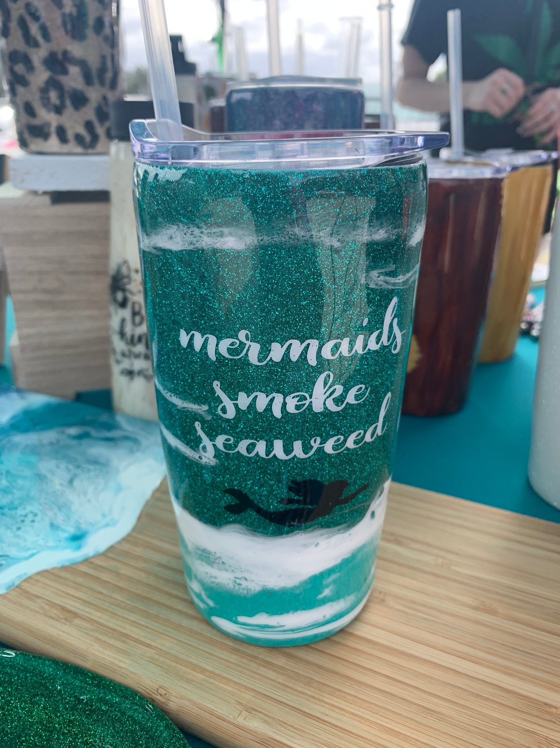 Get beach ready with this Mermaid Glitter Epoxy Tumbler! Keep your drinks cool and your style hot with this mermaid-inspired tumbler, perfect for sun-soaked days by the water. With a touch of glitter and a sleek epoxy finish, this tumbler is as magical as it is practical. Drink up, mermaids!