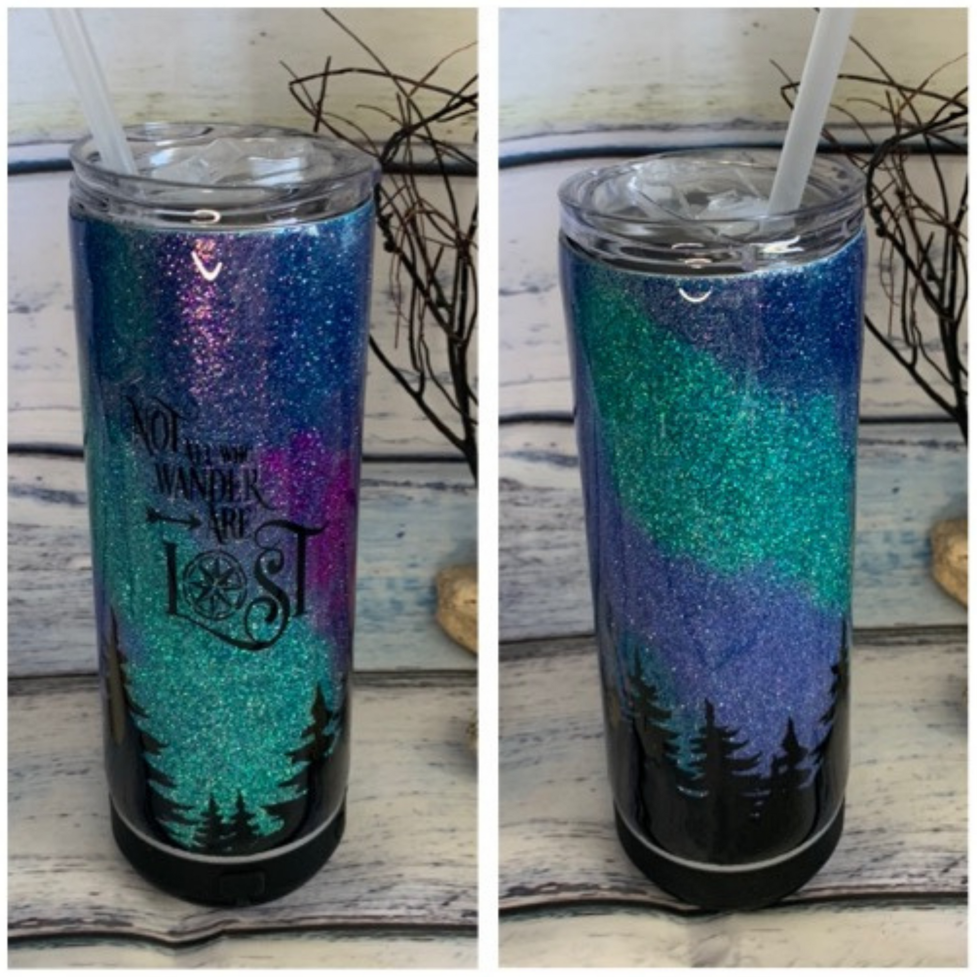 This eye-catching Northern Lights epoxy tumbler is the perfect way to add a bit of inspiration to your day! It's double-walled, vacuum insulated to keep drinks hot or cold for hours, and features a gorgeous cosmic northern lights design. Enjoy your favorite beverage in style!