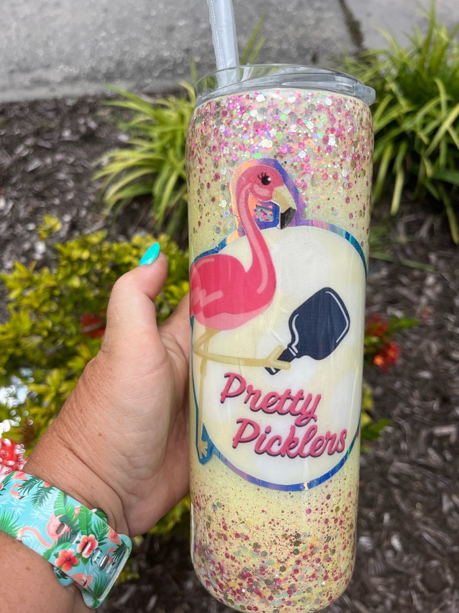 Get ready to sip in style with the Pretty Picklers epoxy tumbler! Made with high-quality materials, this tumbler makes for a perfect addition to any drinkware collection. With its durable construction and eye-catching design, it's the perfect way to keep your drinks hot or cold while on-the-go. Cheers to convenience and style!