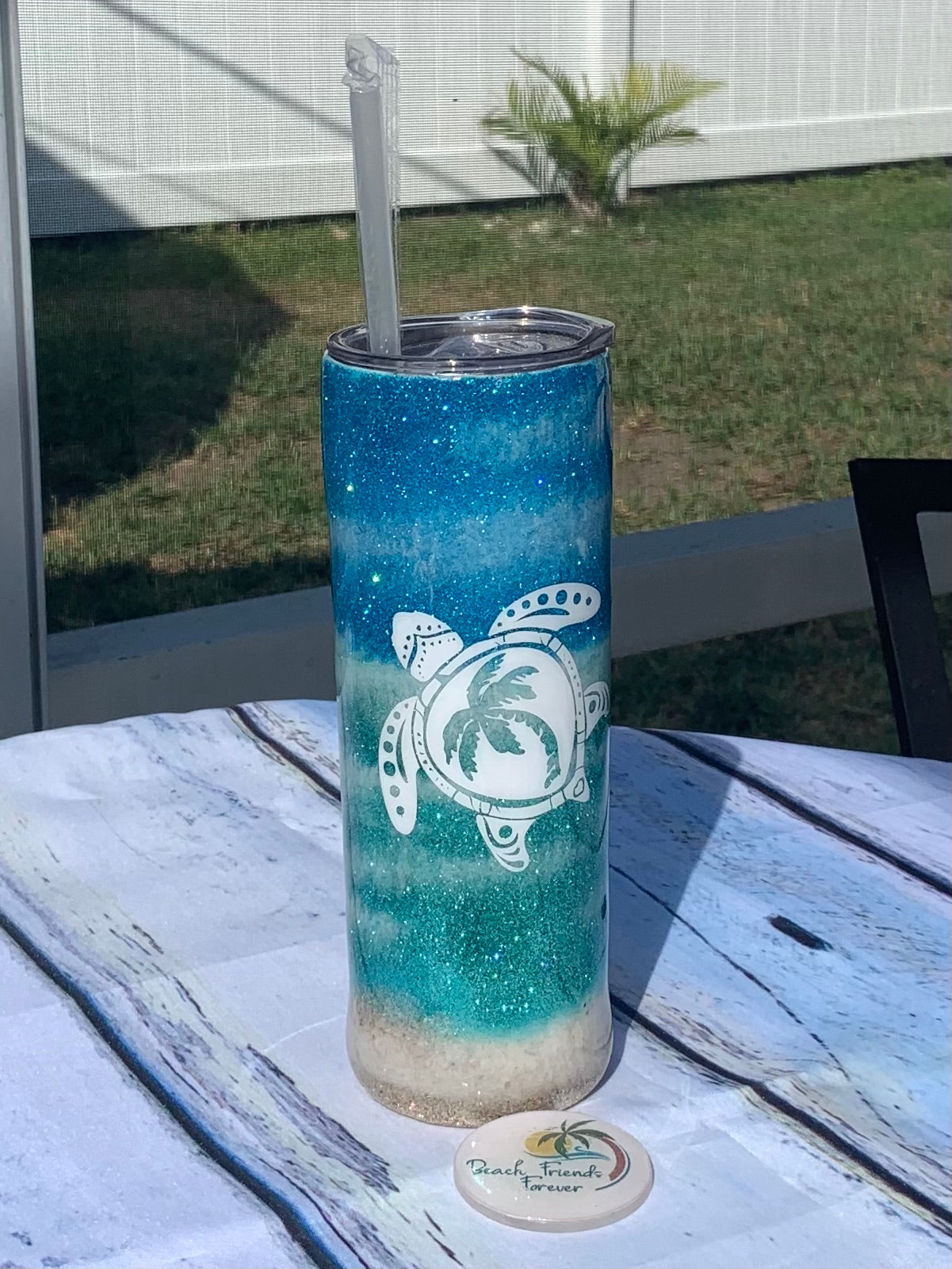 Looking for the perfect beach tumbler? Look no further than this sparkly Sea Turtle Glitter Beach Epoxy Tumbler! With mesmerizing swirls of glitter and adorable sea turtle artwork, this tumbler is sure to make waves! Perfect for sipping your favorite summer drink in style. #ShellYeah!