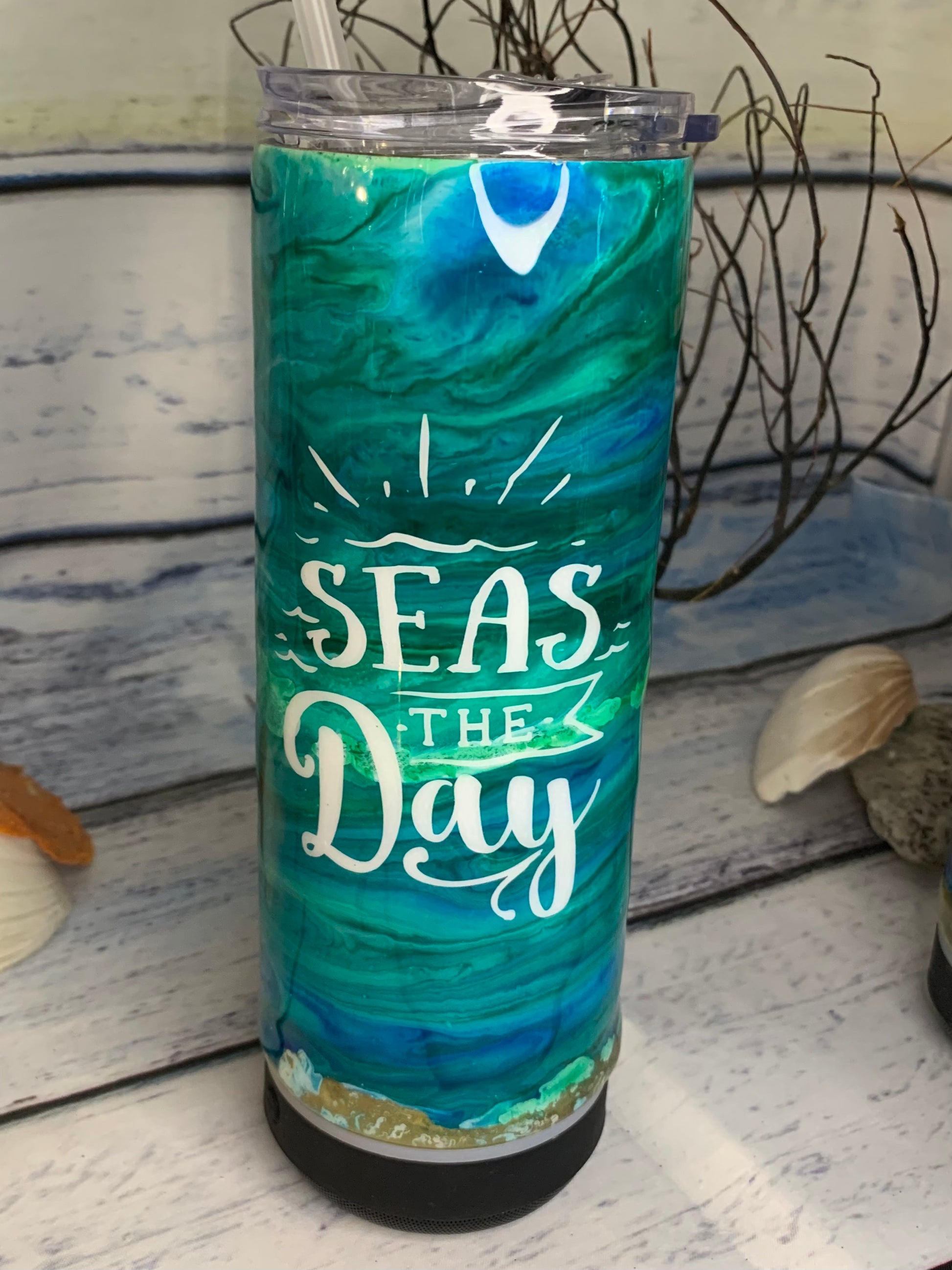 Take a glittery journey of discovery with our Seas the Day Glitter beach epoxy tumbler! Add a little sparkle to your travels with this glistening drinkware companion. What's better than being beachy and dazzlingly beautiful? Nothing! Let your summer sizzle and go "seas the day" in style!