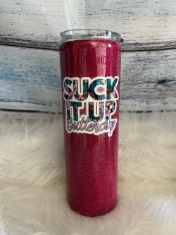 Sip in style with our Suck it up butter cup epoxy tumbler! The durable construction and easy-to-clean design make it the perfect companion for on-the-go hydration. Say goodbye to spills and hello to a fun and playful way to enjoy your favorite beverages. (Butter up and hydrate with a twist!)