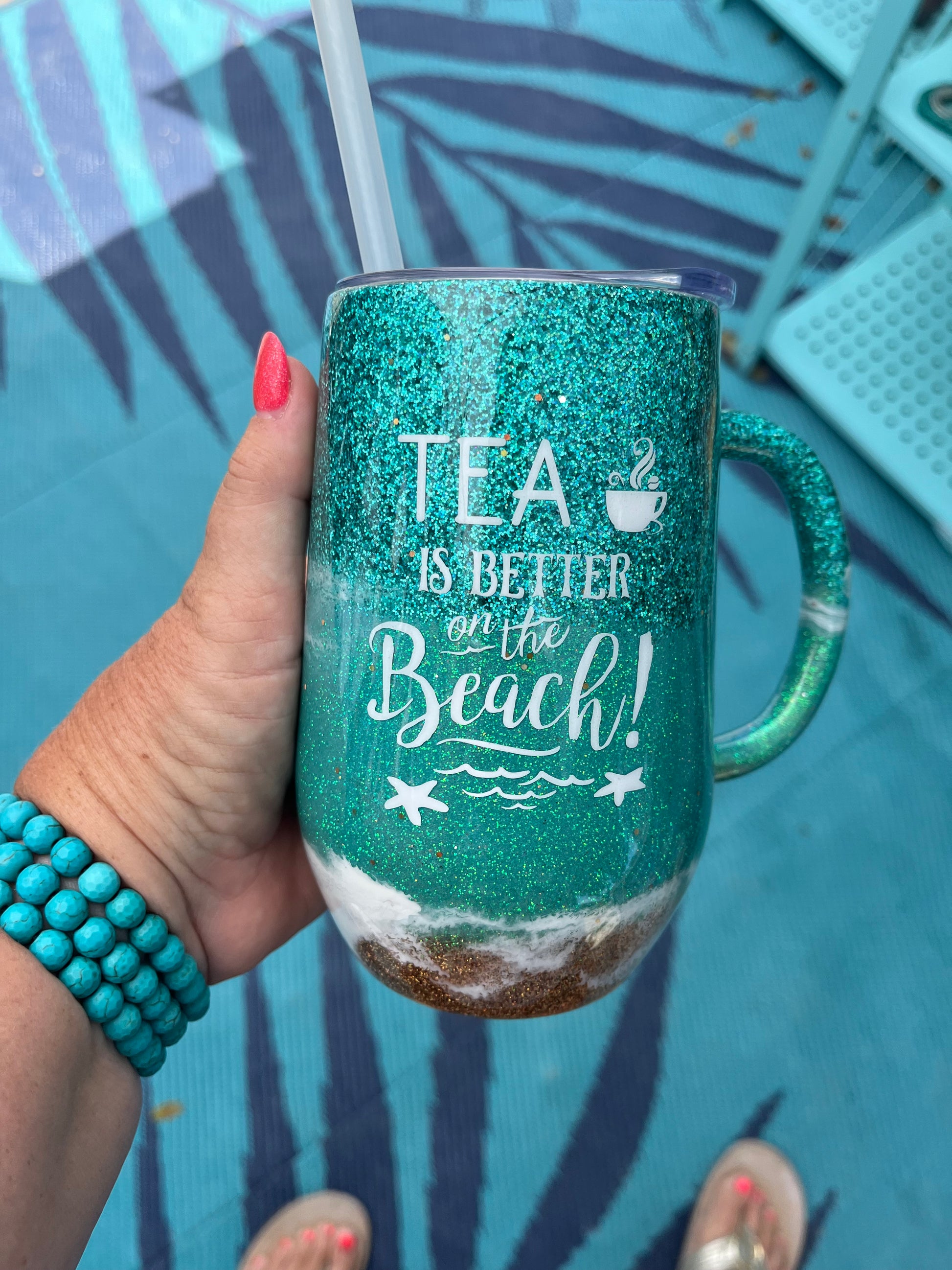 Sip your favorite tea in style with our Tea is better at the beach Glitter beach epoxy tumbler. The perfect companion for a day by the ocean, this tumbler adds a touch of sparkle to your drink and keeps it at the perfect temperature. Take a sip and let the beach vibes flow!