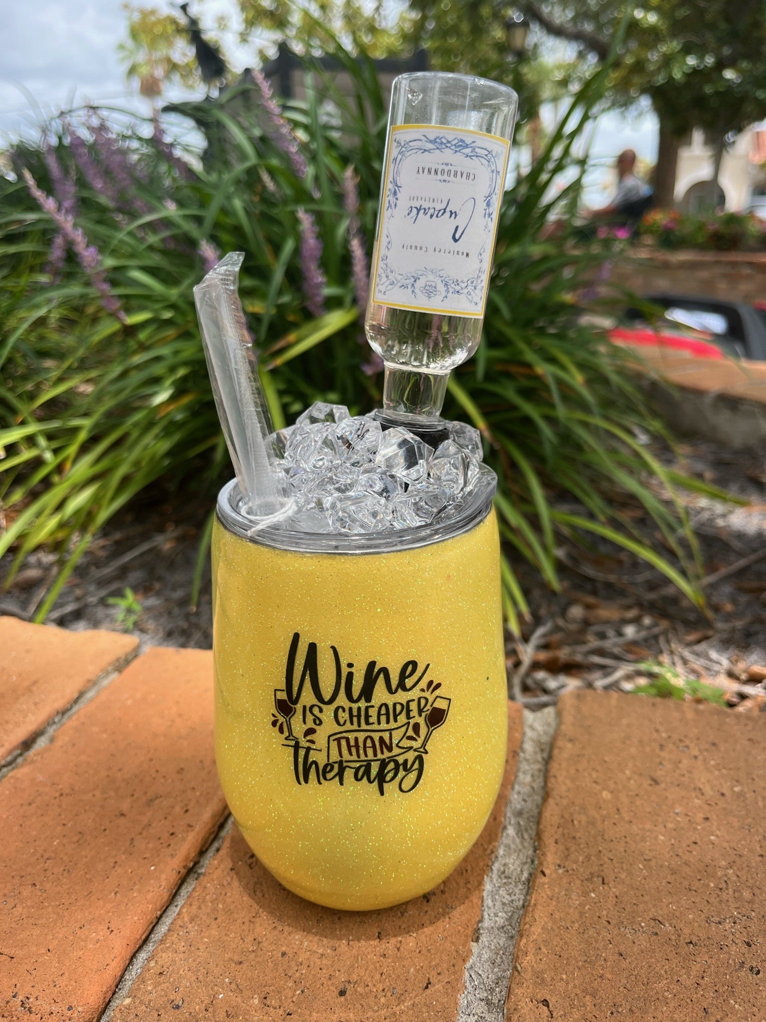 Indulge in some affordable self-care with our Wine is Cheaper Than Therapy Epoxy Tumbler! These glittery tumblers are perfect for sipping your favorite vino while getting some much-needed relaxation. With an added touch of sparkle, your glass of wine will never feel more therapeutic. Cheers to that!
