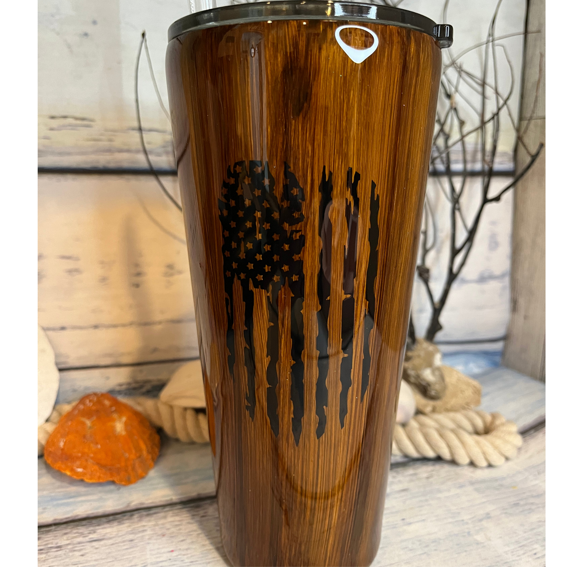 This wood look flag epoxy tumbler means business! Show your patriotism with this stylish piece, created with a wood look with an unmistakable flag print. Get your hands on one and show 'em who's boss!