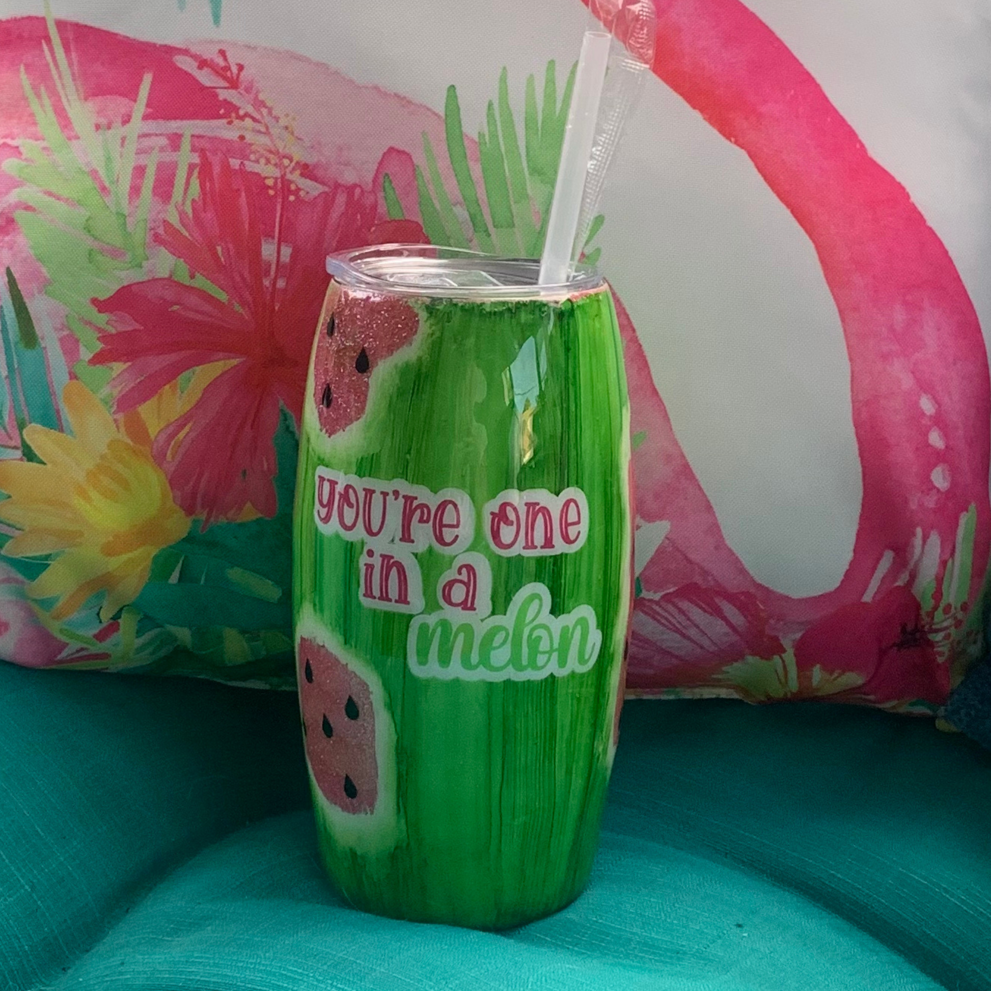 This You're one in a melon watermelon epoxy tumbler is a real smash hit!! Not only is it super sassy, but it's also a must-have statement piece! Enjoy your favorite cold drinks out of this stylish melon-inspired tumbler, and spread some summertime vibes!